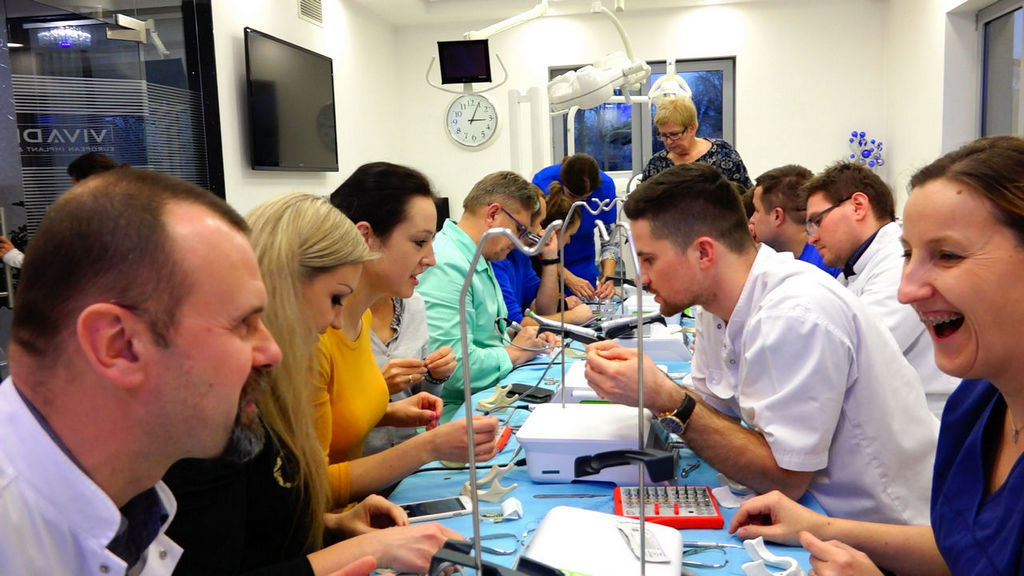 W ostatni przedświąteczny Bożonarodzeniowy weekend 2017 roku, ruszył kolejny program edukacyjny Instytutu Vivadental przeznaczony dla adeptów implantologii stomatologicznej – PRELUDIUM IMPLANTOLOGII – IMPLANTOLOGIA W TEORII I PRAKTYCE. Przystąpiło do niego 14 lekarzy, którzy w trakcie 5-miesięcznego szkolenia zdobędą podstawowe wiadomości z zakresu chirurgii i protetyki implantologicznej oraz nabędą umiejętności praktyczne przechodząc cykl intensywnych ćwiczeń na modelach oraz kurs z udziałem pacjentów, na którym wykonają swoje pierwsze procedury zabiegowe wyuczone w trakcie szkolenia. W późniejszym etapie będą mogli podnosić zakres wiedzy i doskonalić swoje umiejętności na Practiculum Implantologii, najbardziej zaawansowanym i innowacyjnym szkoleniu dla adeptów implantologii stomatologicznej, który w roku 2017 otrzymał prestiżową nagrodę polskiego biznesu – Godło Teraz Polska.