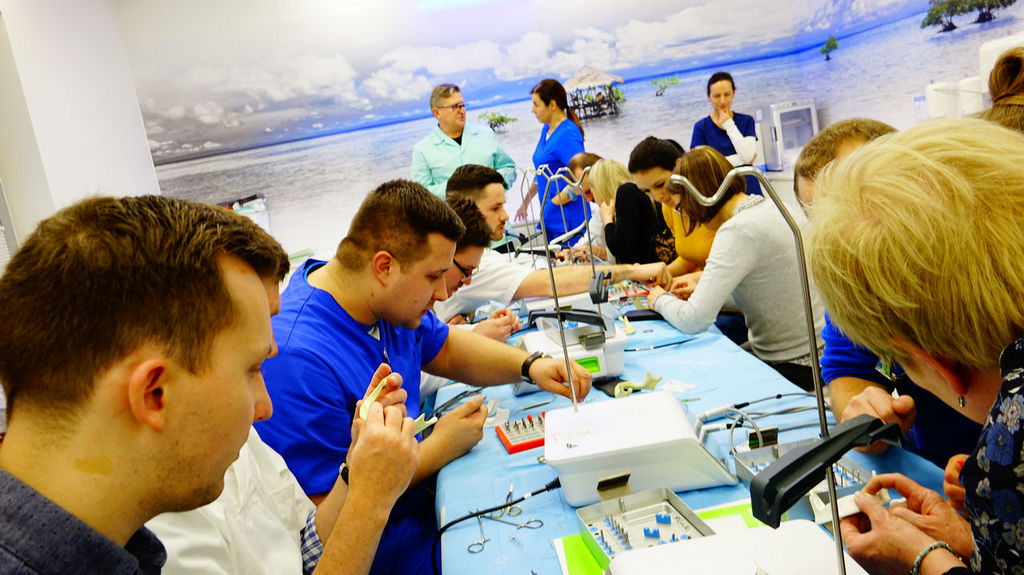 Szkolenie PRELUDIUM IMPLANTOLOGII – IMPLANTOLOGIA W TEORII I PRAKTYCE rozpoczęliśmy tradycyjnie od wykładów i ćwiczeń z chirurgii stomatologicznej, a ponad programowo nasi kursanci przeszli zajęcia praktyczne z wprowadzania implantów na modelach.