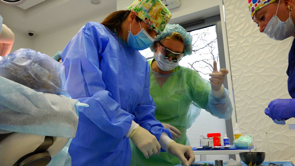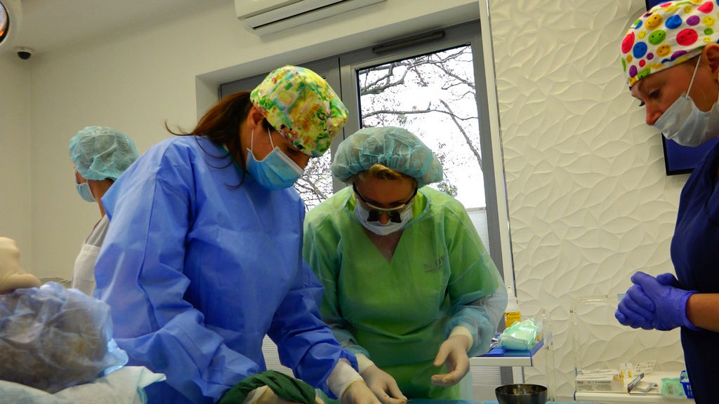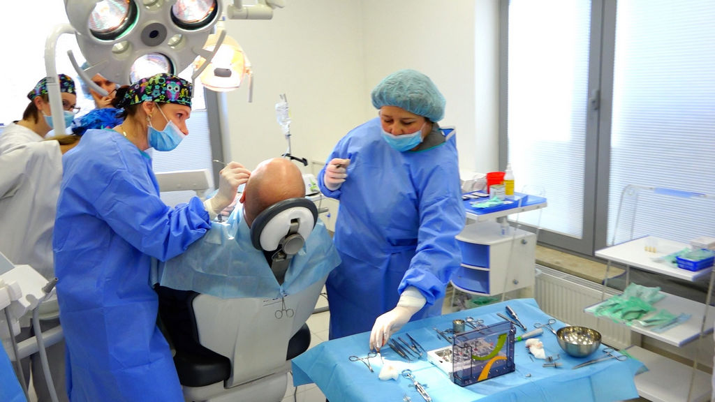 PRACTICULUM IMPLANTOLOGII – SEZON III wchodzi w końcową fazę szkolenia. Oznacza to, że na każdej sesji kursanci wykonują coraz więcej zabiegów szkoleniowych u Pacjentów, coraz trudniejszych i złożonych. Wykonują też coraz więcej zabiegów samodzielnie. Są to zarówno procedury implantologiczne, jak i procedury augmentacyjne w szczęce i żuchwie.