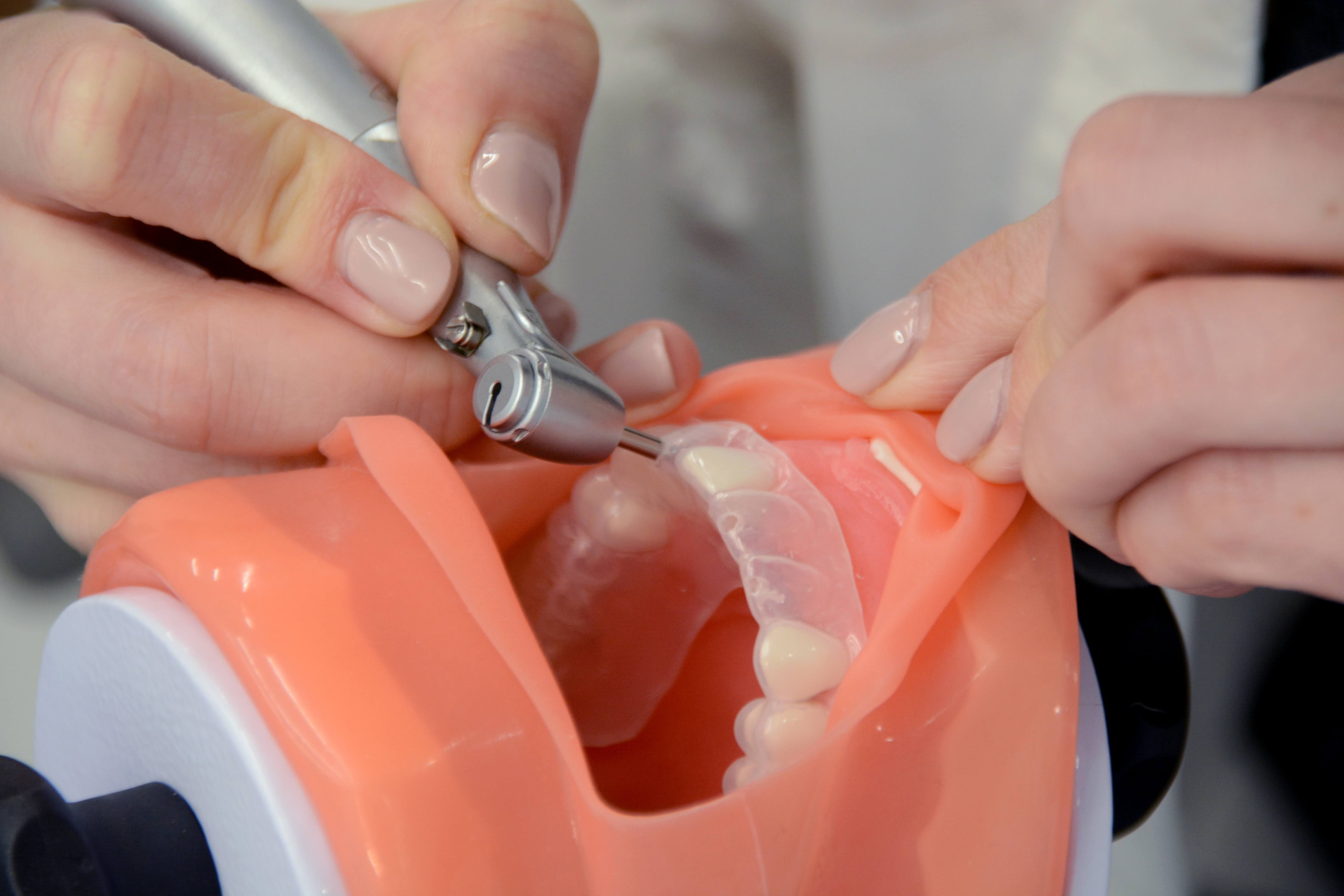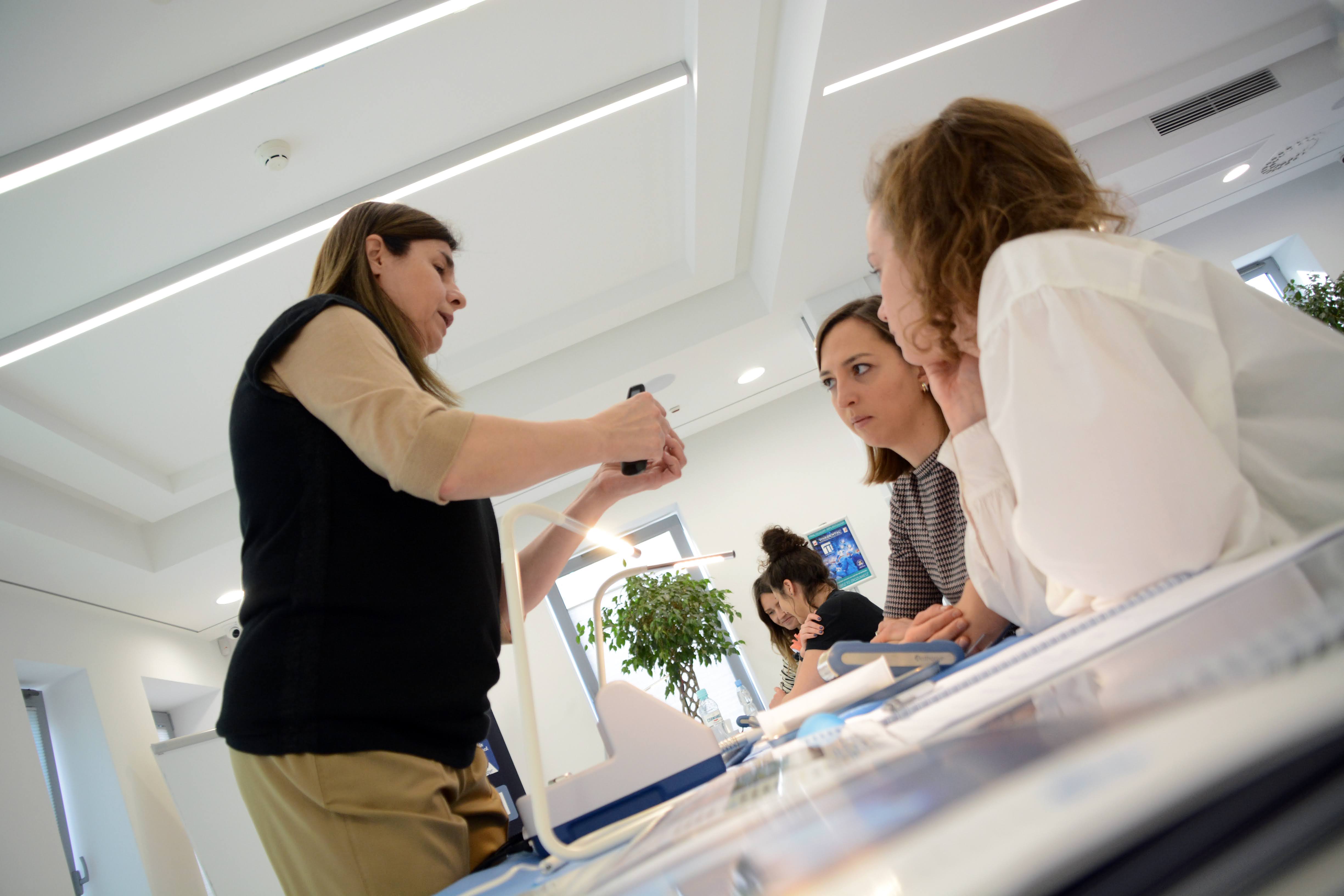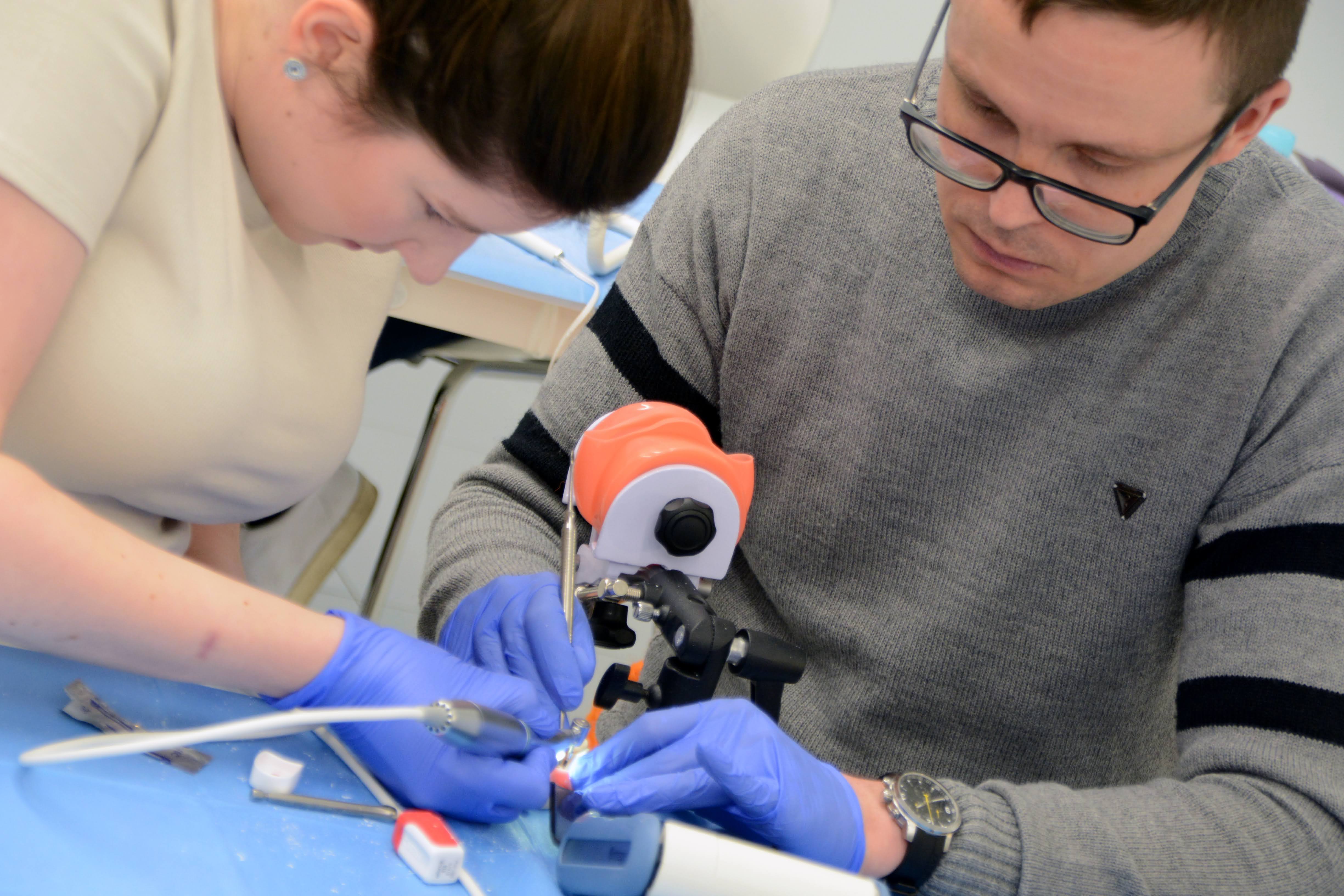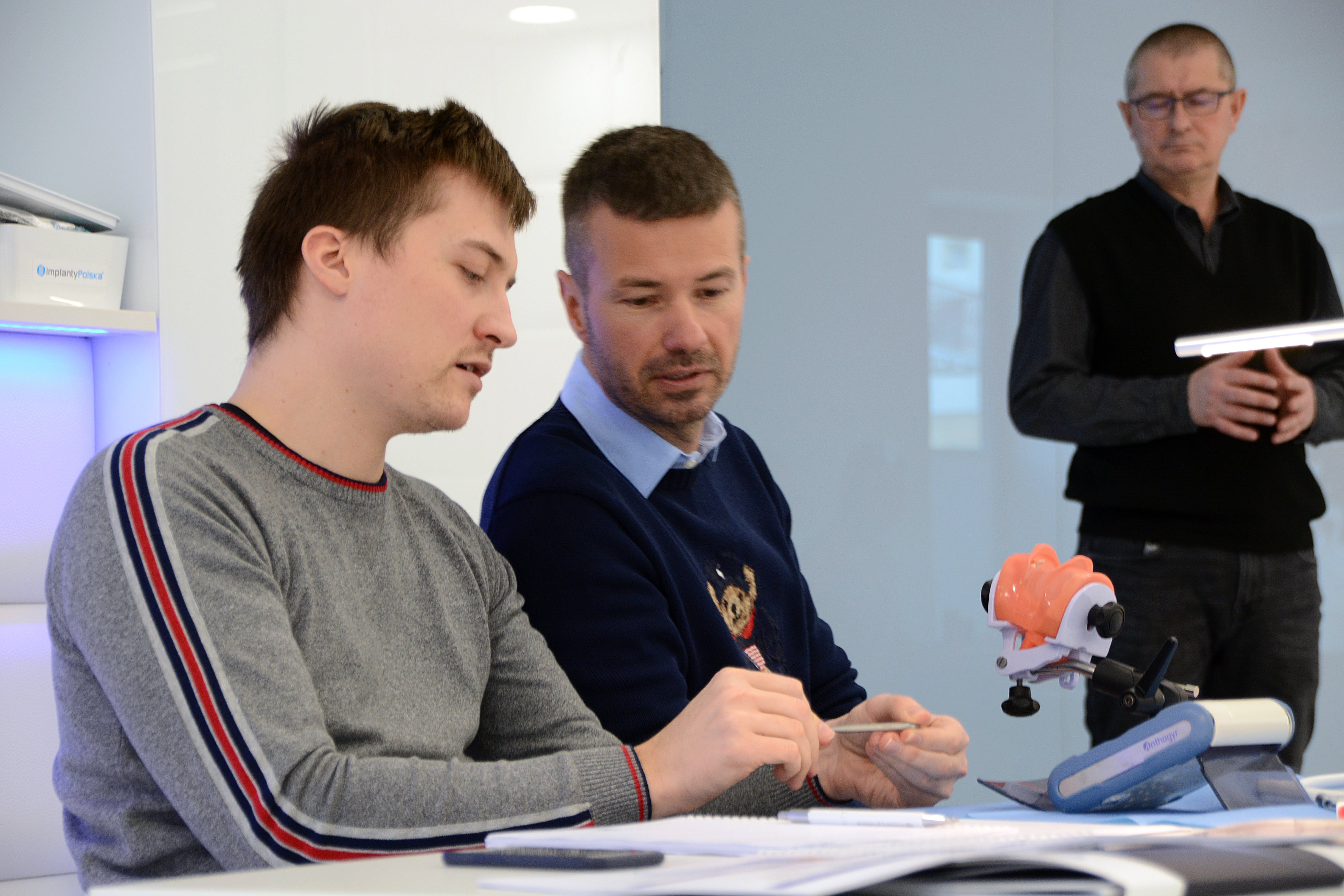 Drugi dzień zdominowała praktyka i intensywne ćwiczenia na sali warsztatowej z wprowadzania implantów - regularnych i agresywnych oraz technik szycia po implantacji, na modelach oraz zaawansowanych manekinach szkoleniowych. Poprzedziła je prezentacja systemu implantologicznego Axiom®, w którym prowadzone jest szkolenie.