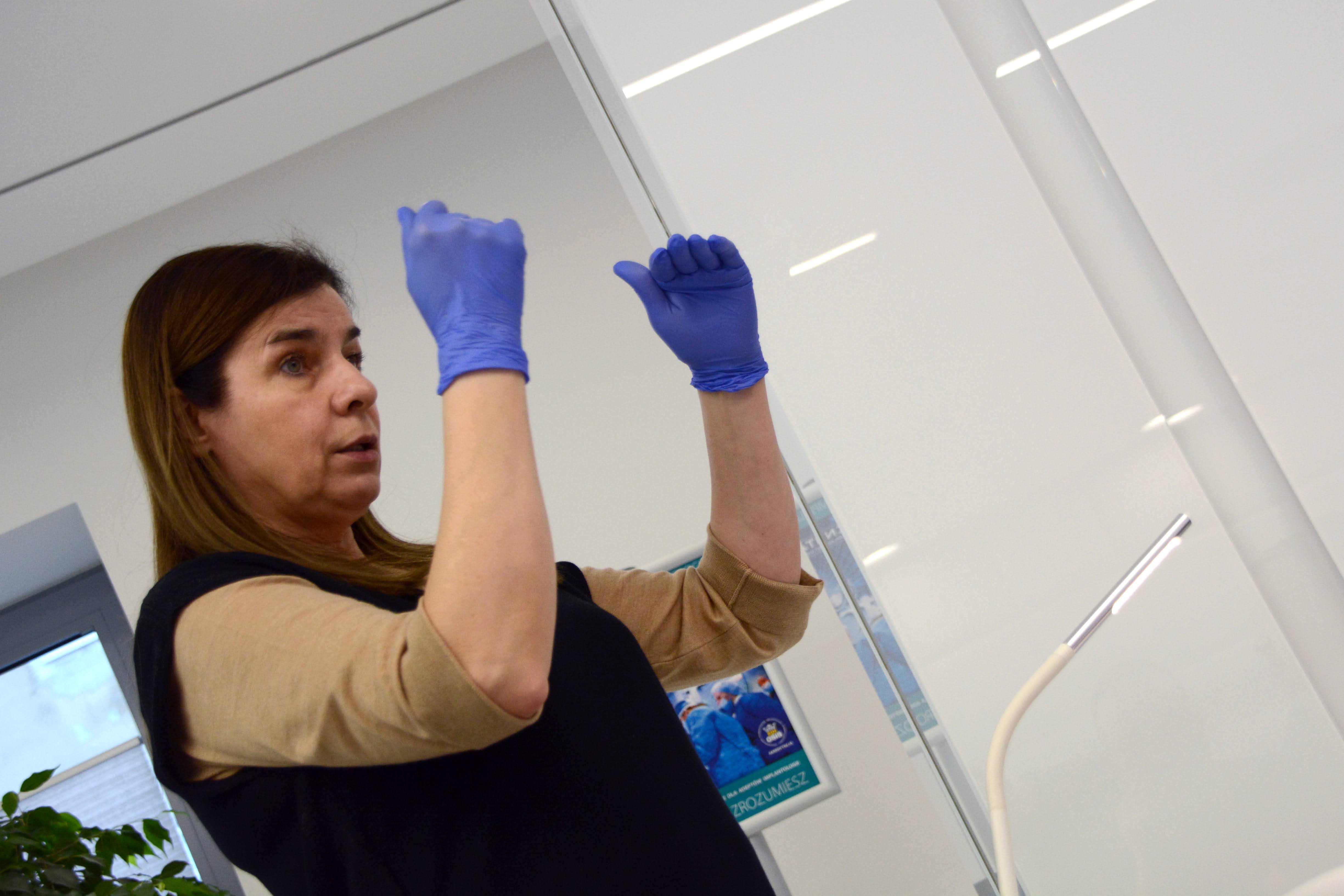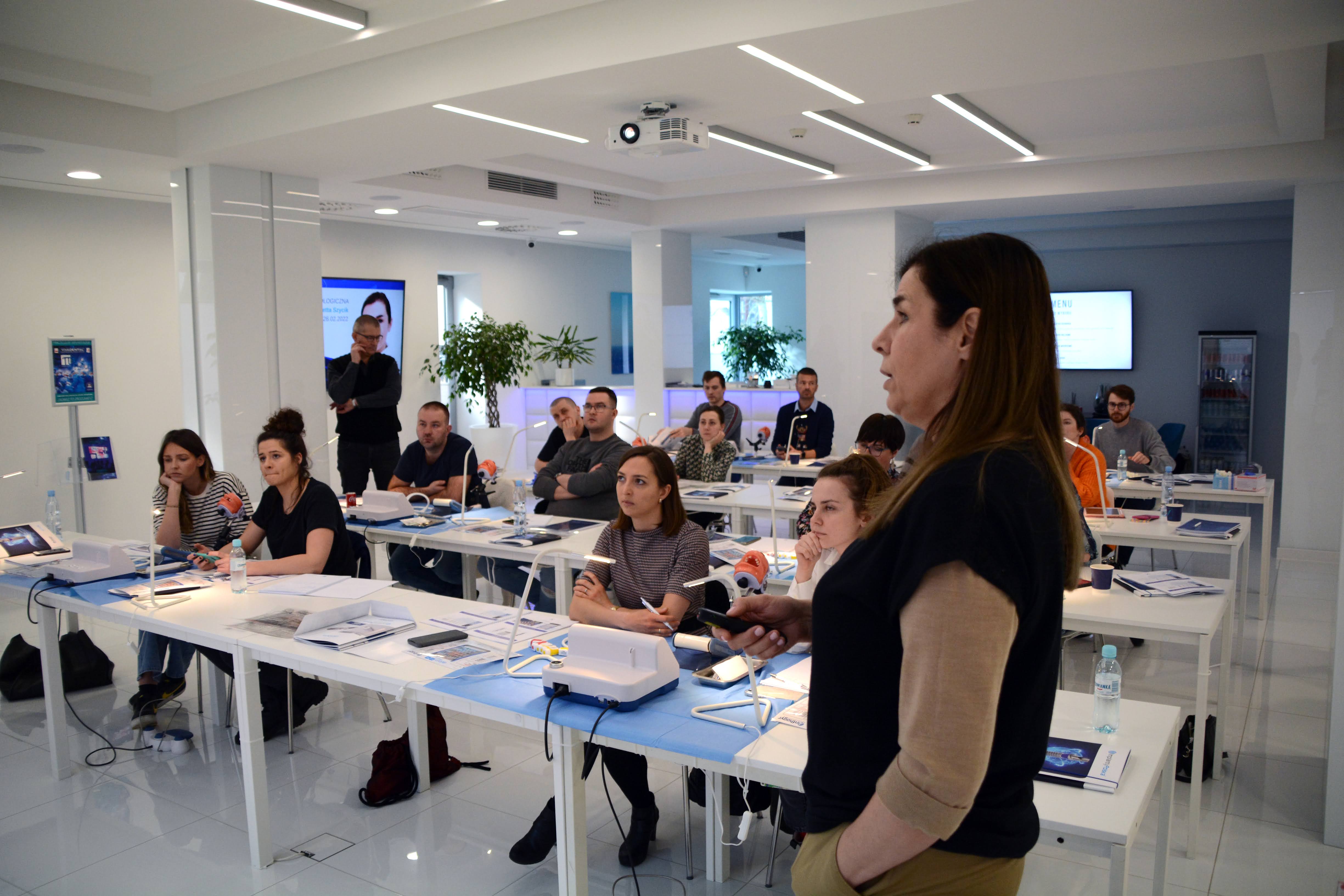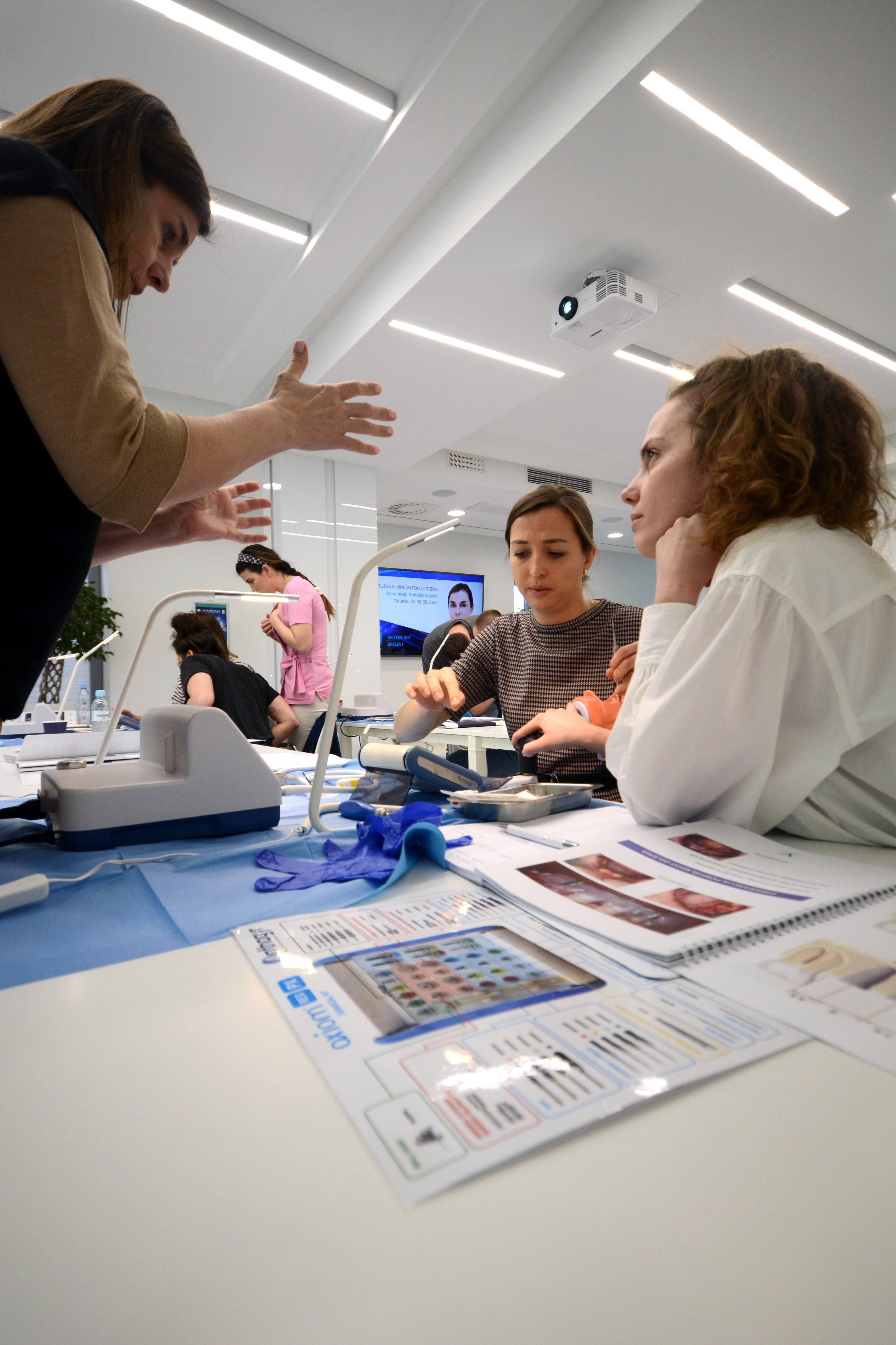 Pierwszego dnia, lekarze uczestniczyli w wykładach, a w fascynujący świat implantologii wprowadziła ich dr n. med. Violetta Szycik. Dzieląc się swoim bogatym, ponad 30 letnim doświadczeniem przedstawiła nie tylko ideę i kompletną przestrzeń implantologii, ale także meandry i najmniejsze detale mające wpływ na powodzenie leczenia.