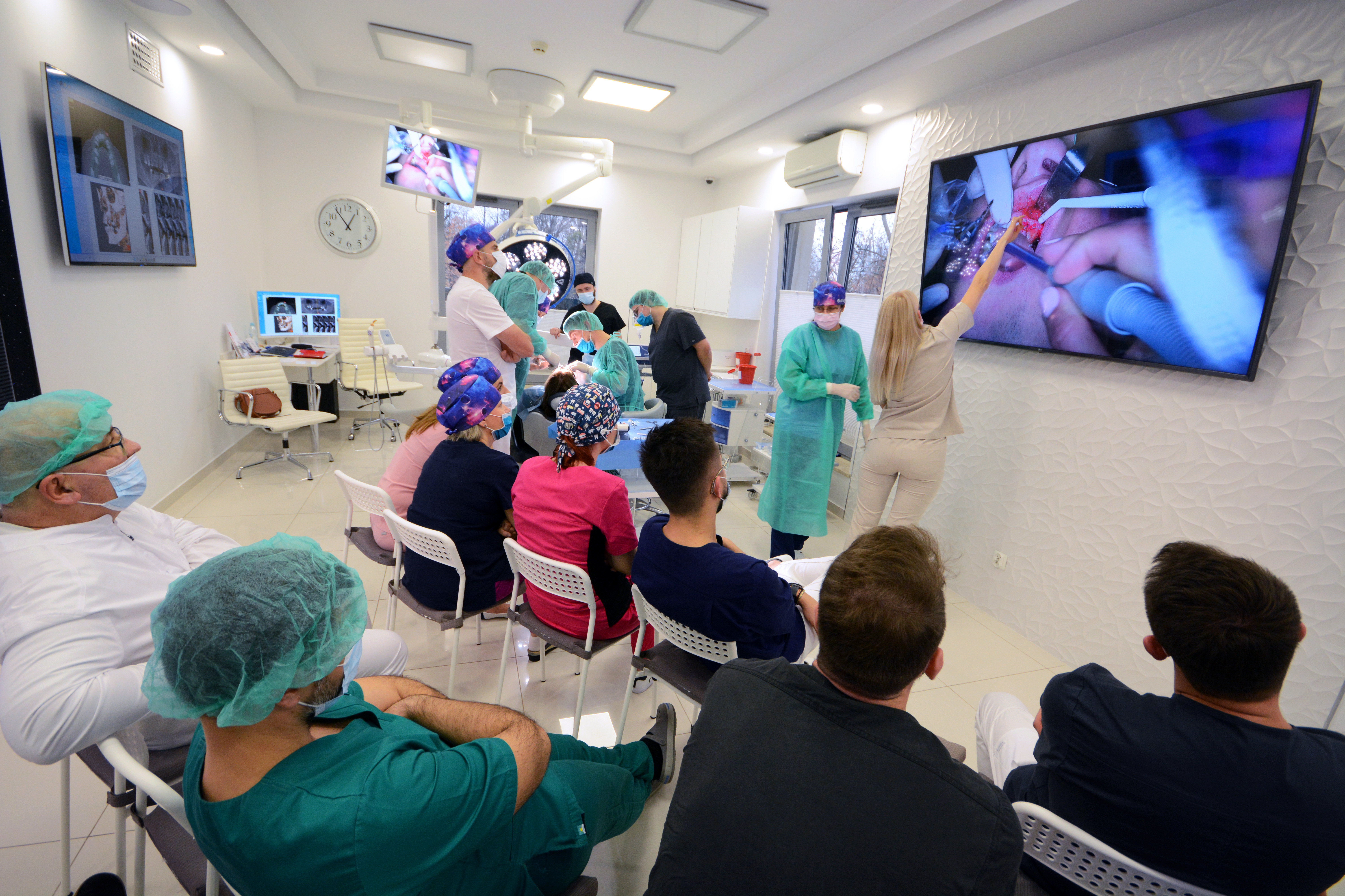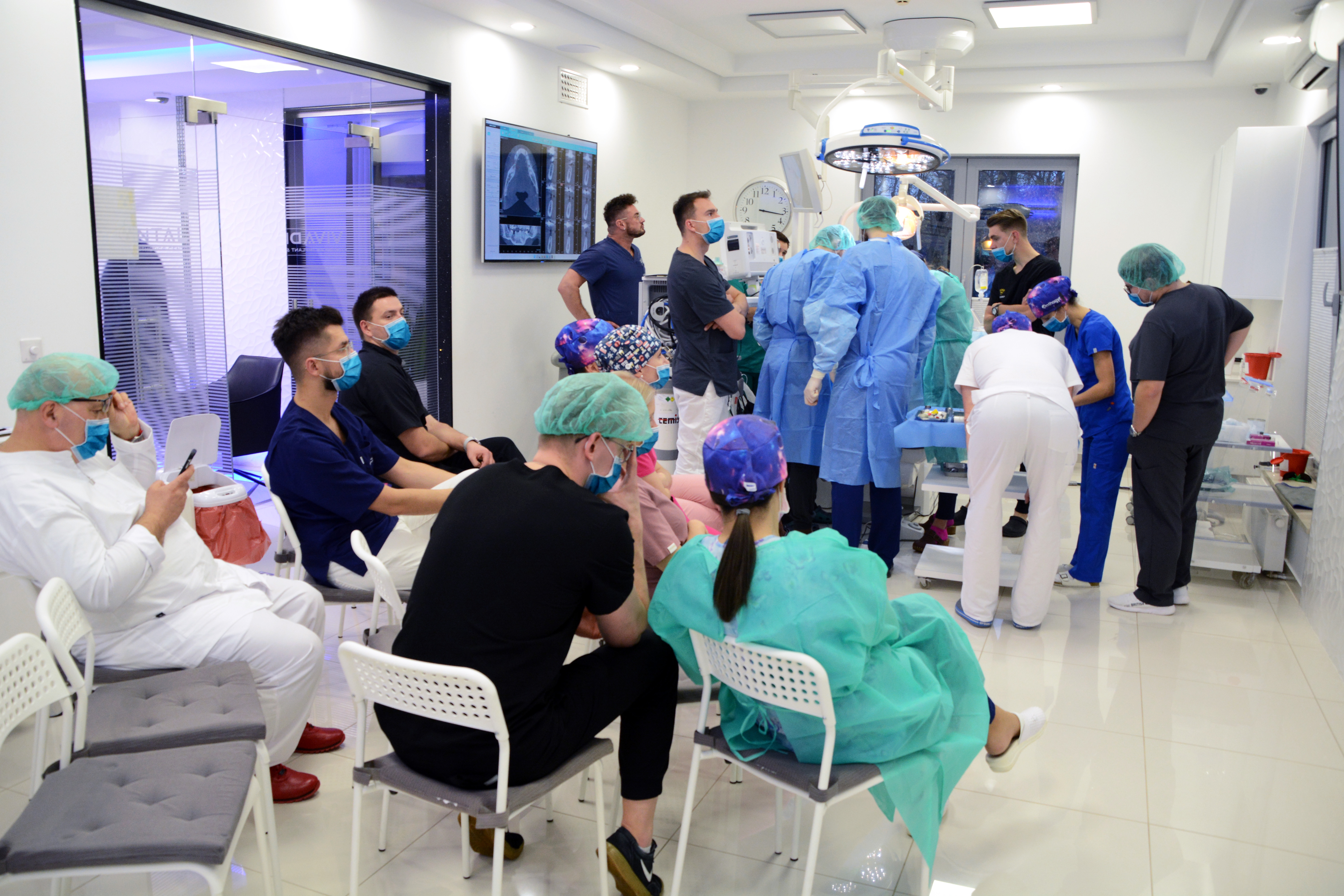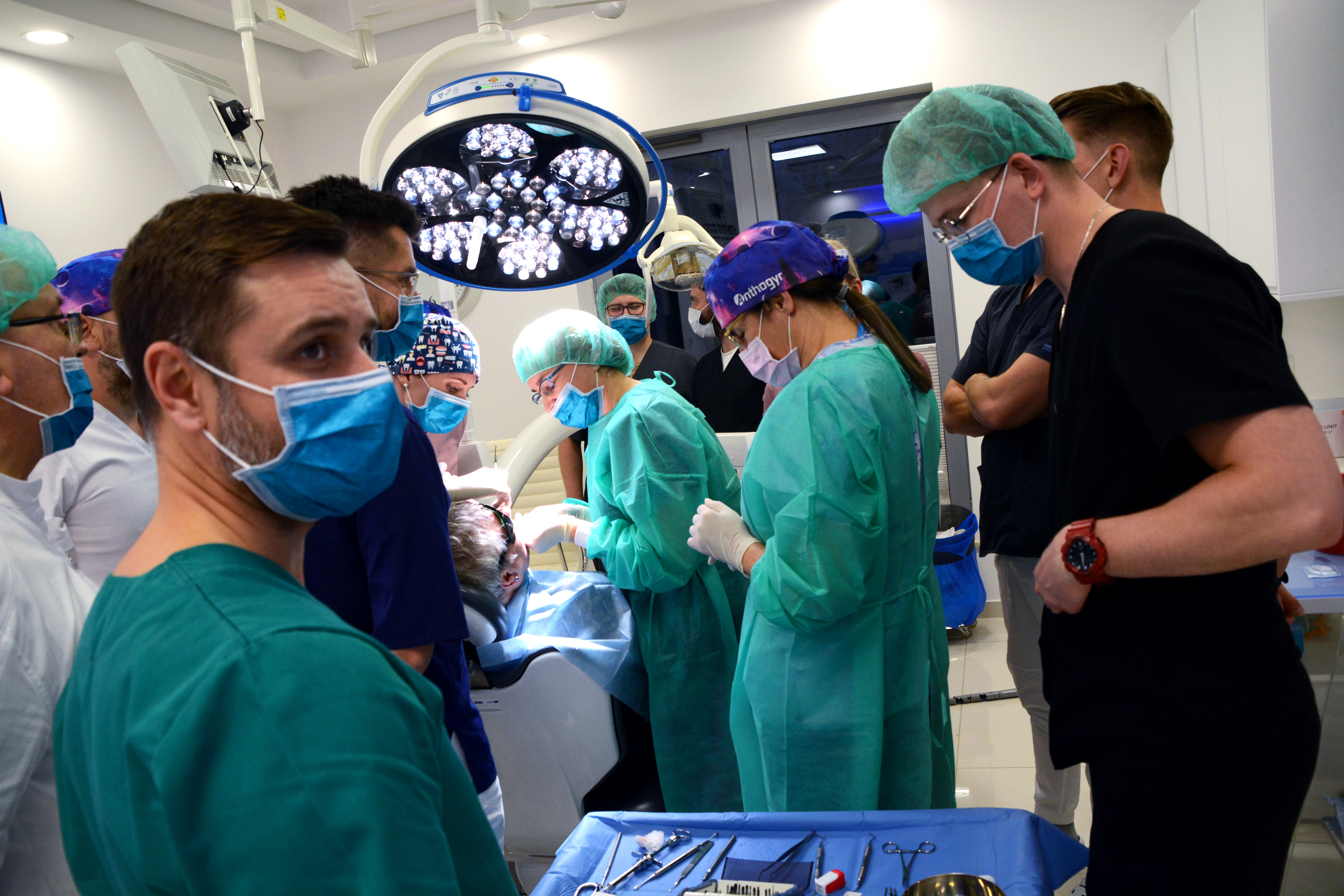 Pierwszy dzień rozpoczął się od wykładu, którego tematem była regeneracja kości w codziennej praktyce implantologicznej. Następnie kursanci przystąpili do zabiegów z udziałem pacjentów. Lekarze zmierzyli się z 3,5 godzinnym zabiegiem, który wykonany był przy udziale anestezjologa w analgosedacji.