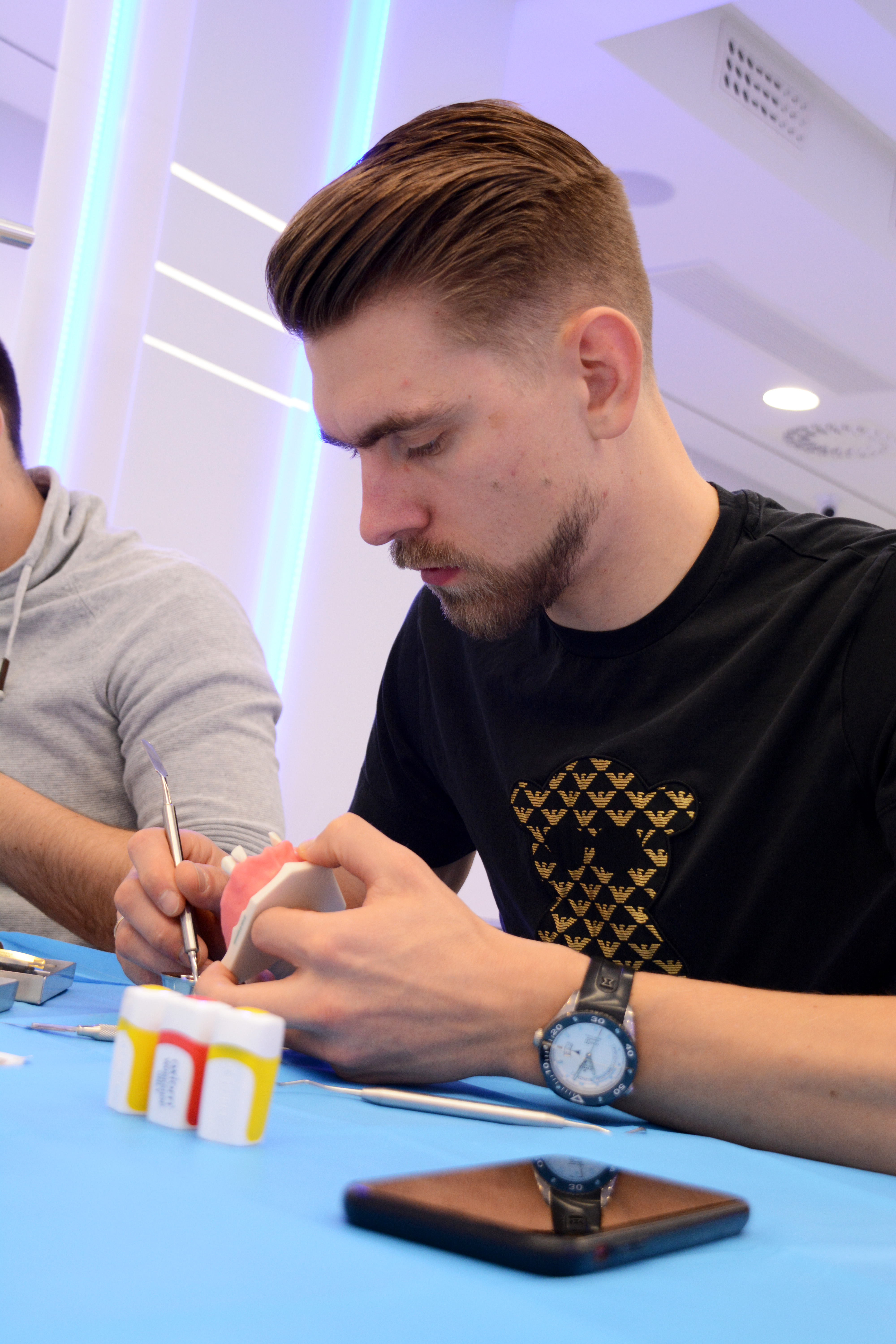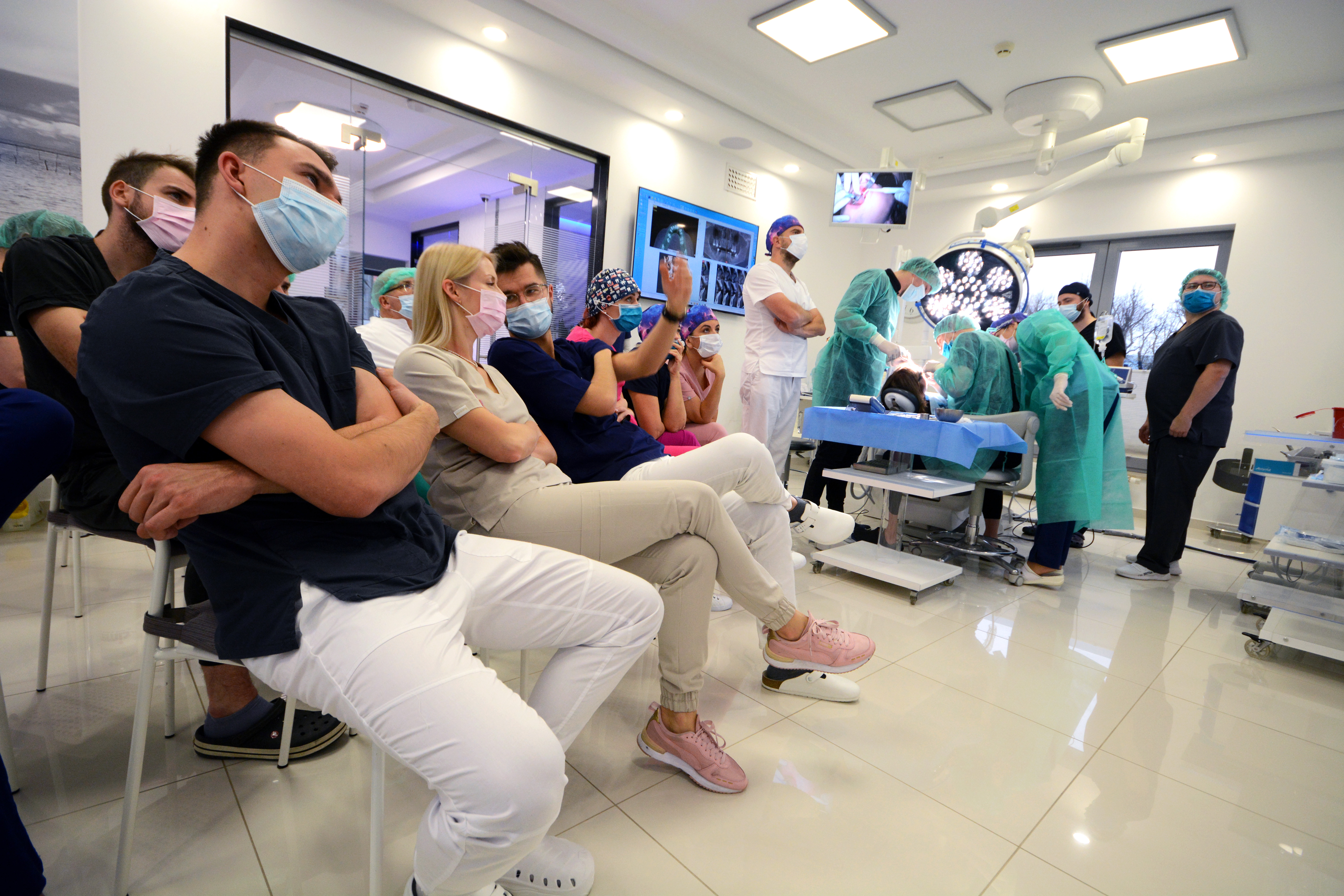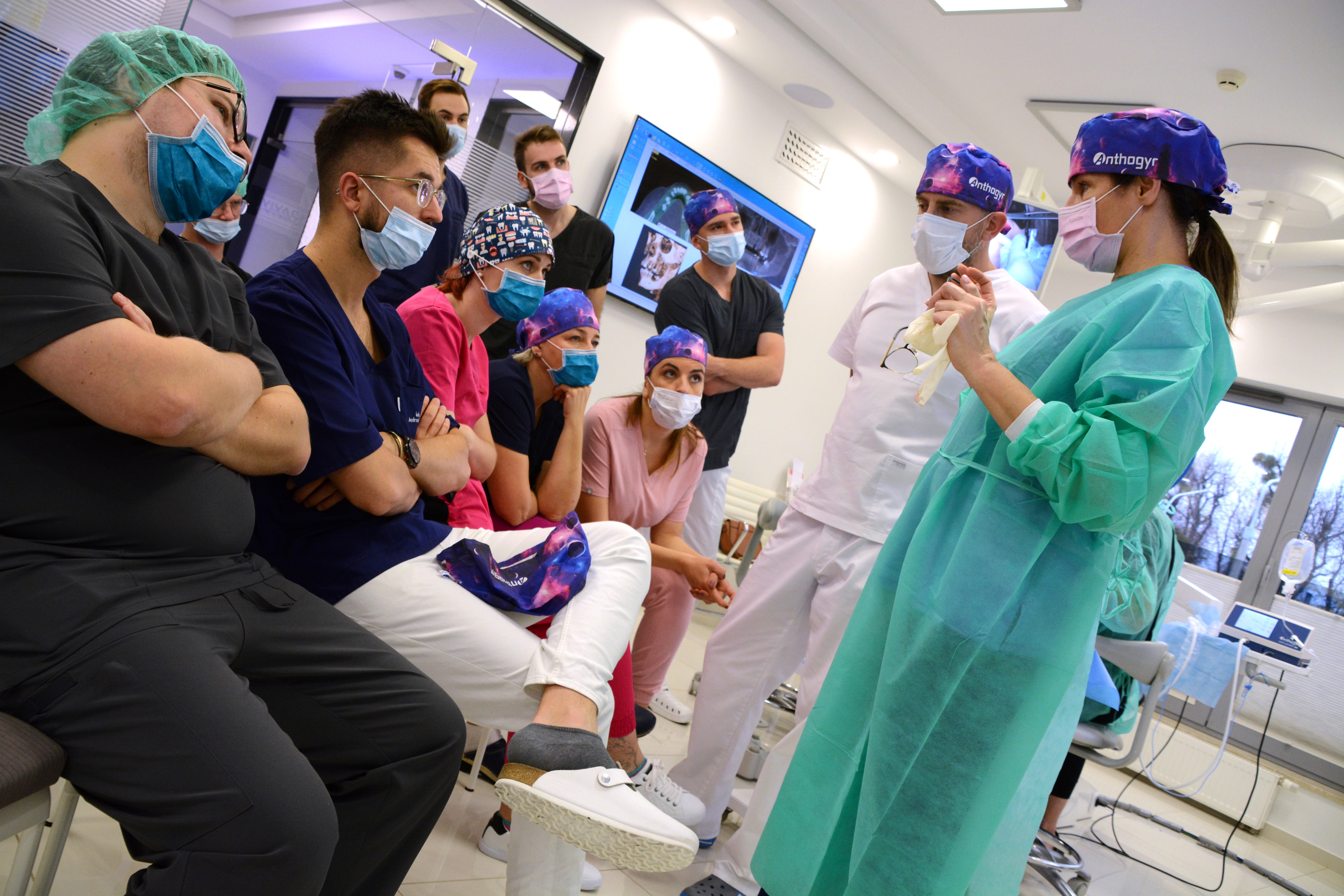 Pierwszy dzień rozpoczął się od wykładu, którego tematem była regeneracja kości w codziennej praktyce implantologicznej. Następnie kursanci przystąpili do zabiegów z udziałem pacjentów. Lekarze zmierzyli się z 3,5 godzinnym zabiegiem, który wykonany był przy udziale anestezjologa w analgosedacji.