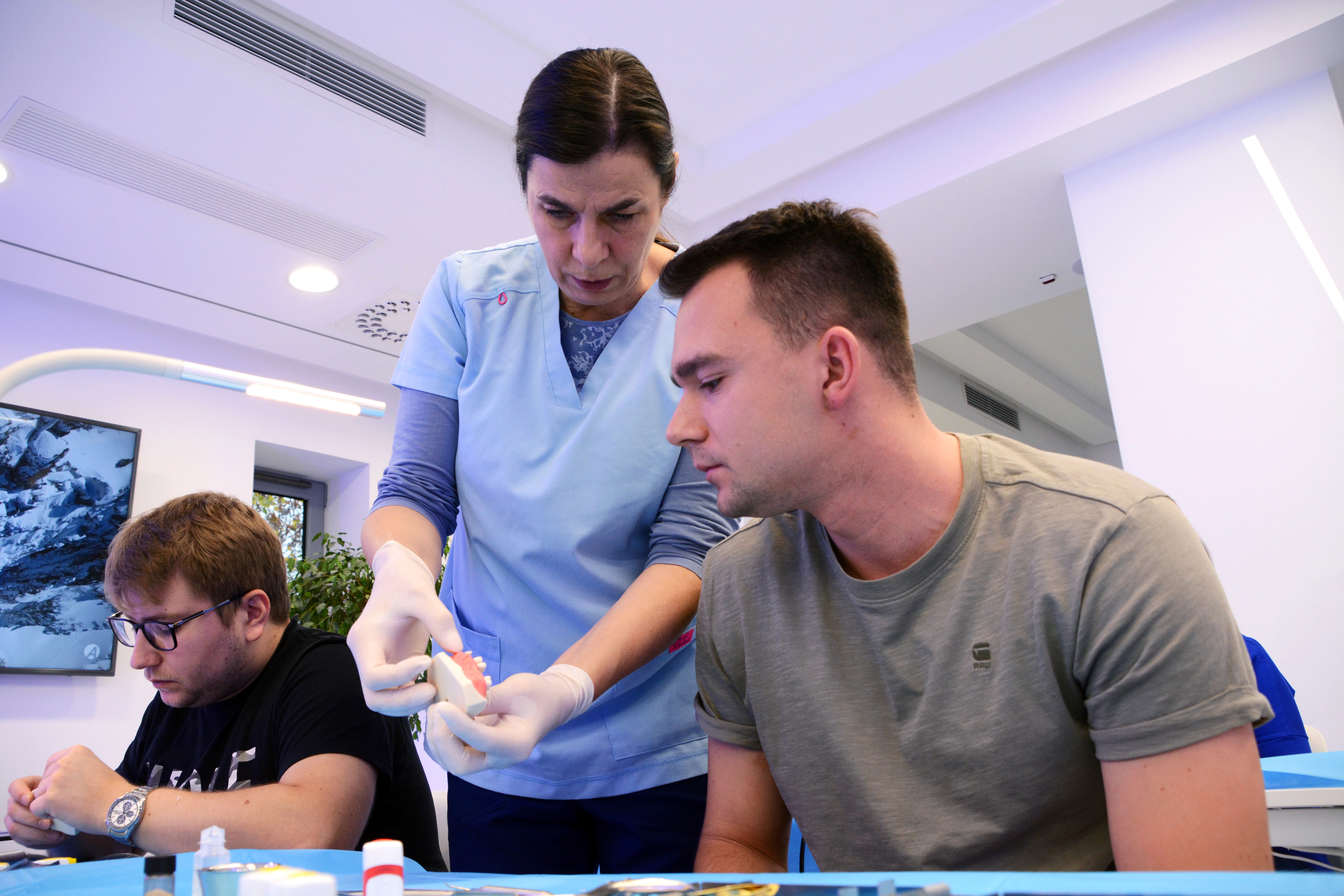 Drugi dzień rozpoczęliśmy od warsztatów i ćwiczeń na modelach, a następnie przystąpiliśmy do kolejnych zabiegów. Wszystko pod kierunkiem dr n. med. Violetty Szycik.