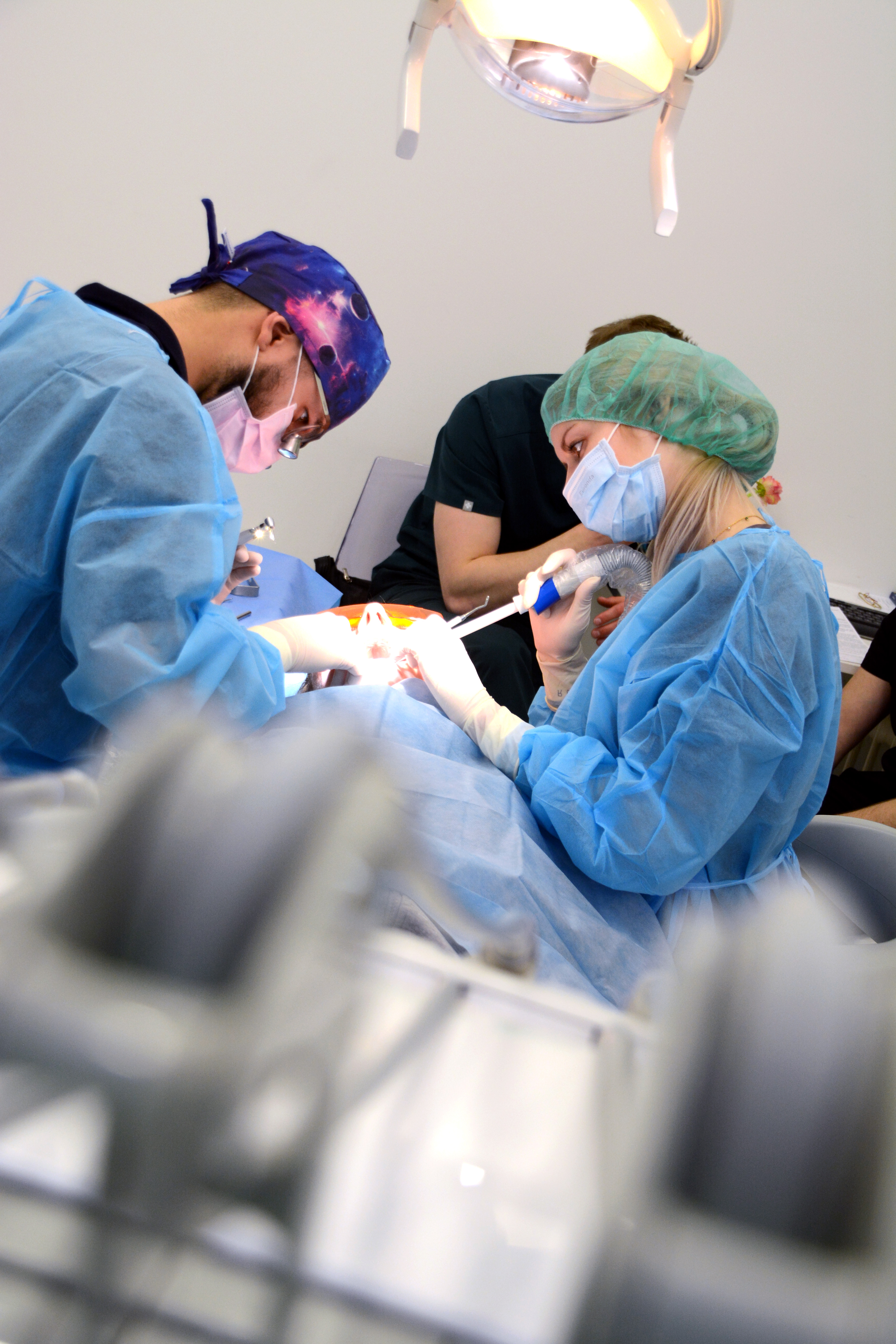 Lekarze pod kierunkiem Mentorów - dr n. med. Violetty Szycik i lek. dent. Małgorzata Piotrowska pracowali w 3 gabinetach jednocześnie. Kursanci wykonali następujące procedury zabiegowe: