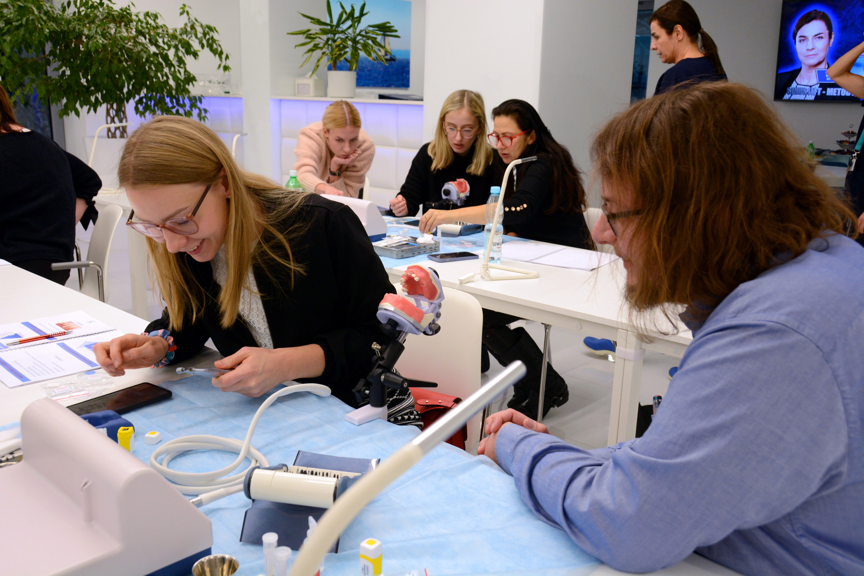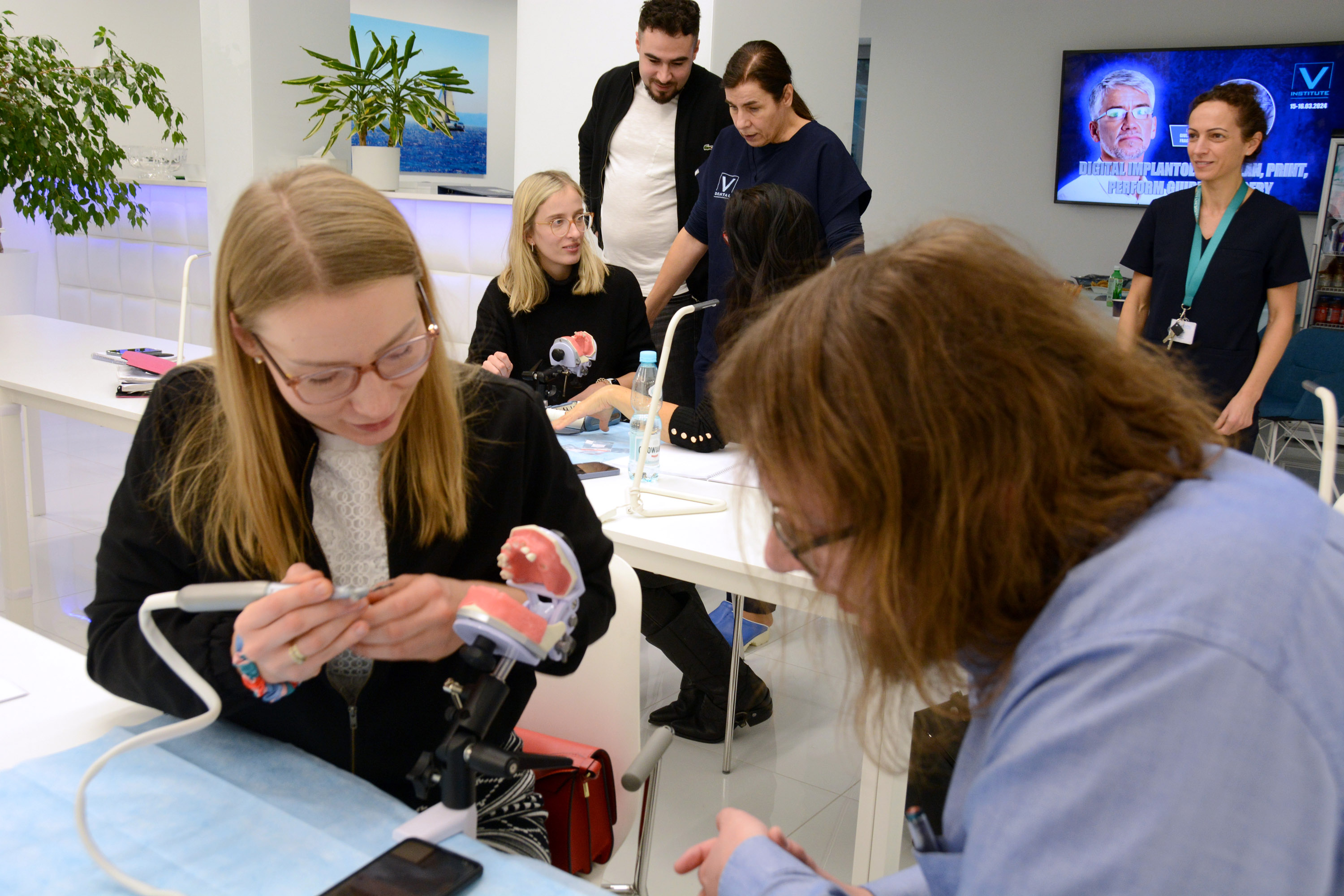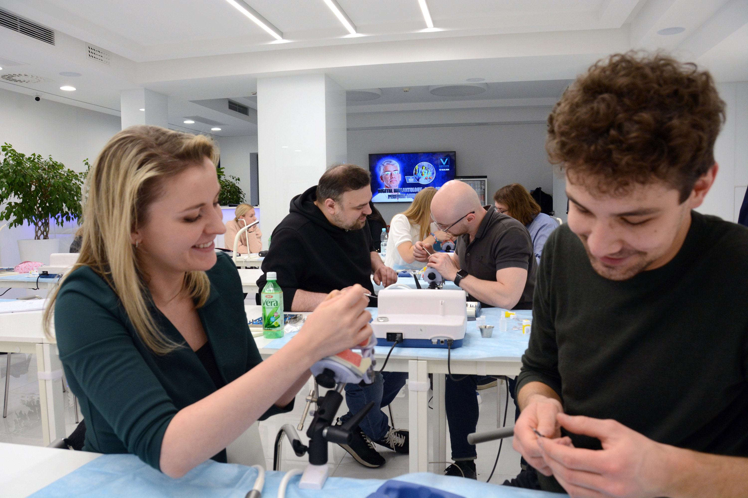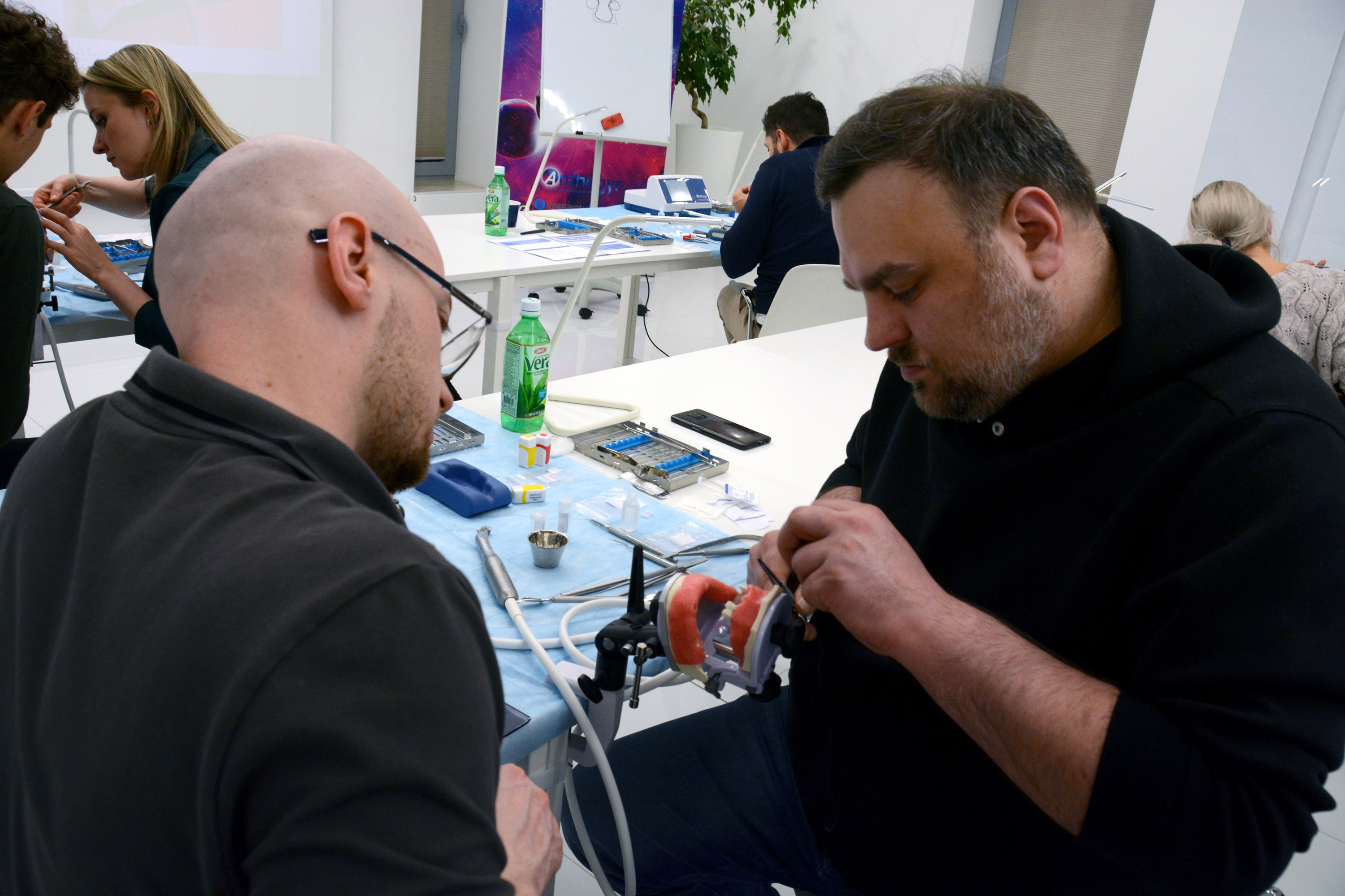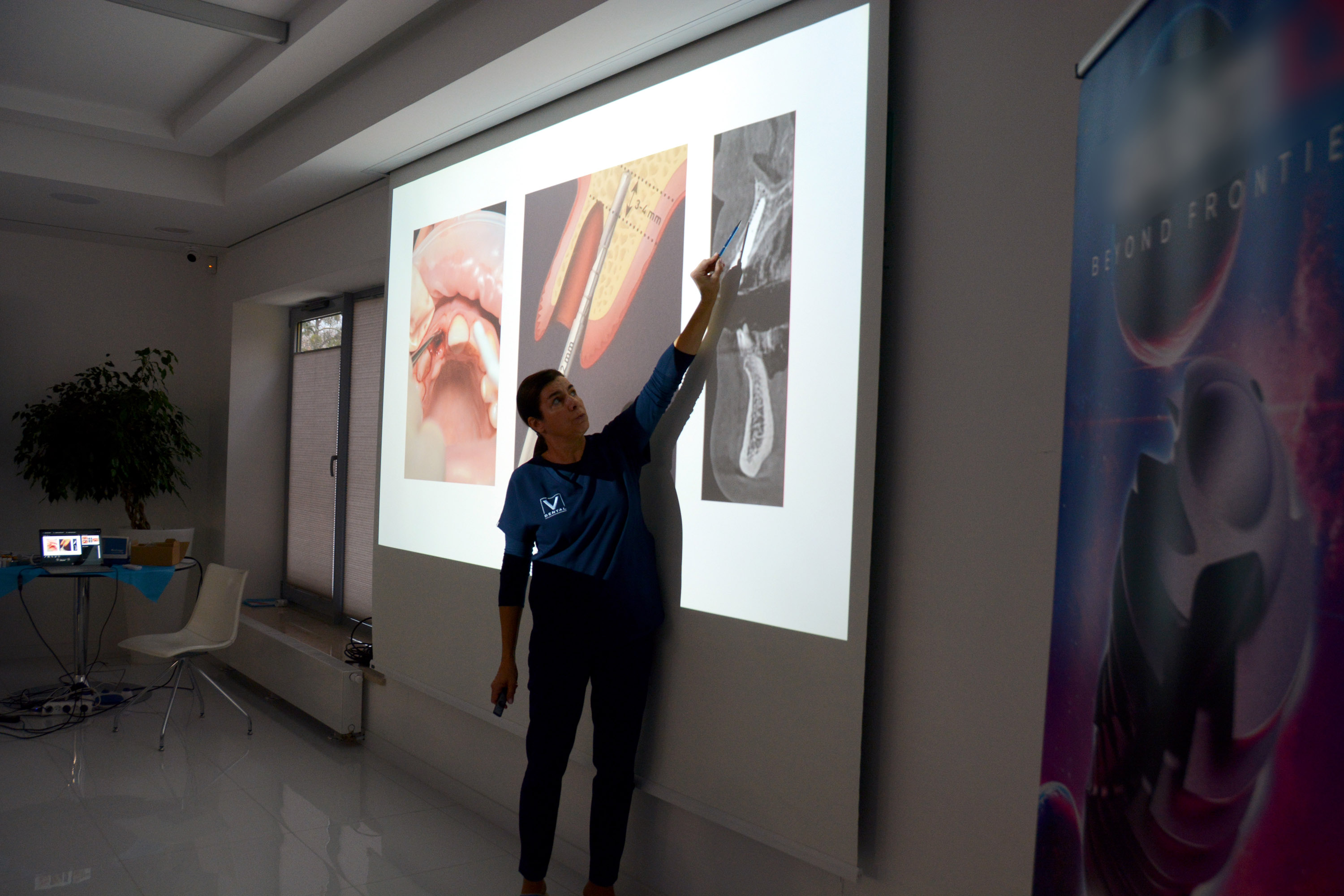 Dr n. med. Magdalena Kisłowska-Syryczyńska podzieliła się wiedzą odnośnie metody pozyskiwania, wirowania i zastosowanie PRF / fibryny bogatopłytkowej. Kolejno odbył się zabieg regeneracji kości wykonany przez kursantów. Odbudowany został wyrostek zębodołowy szczęki z zastosowaniem kości własnej, preparatu kościozastępczego i błony zaporowej.