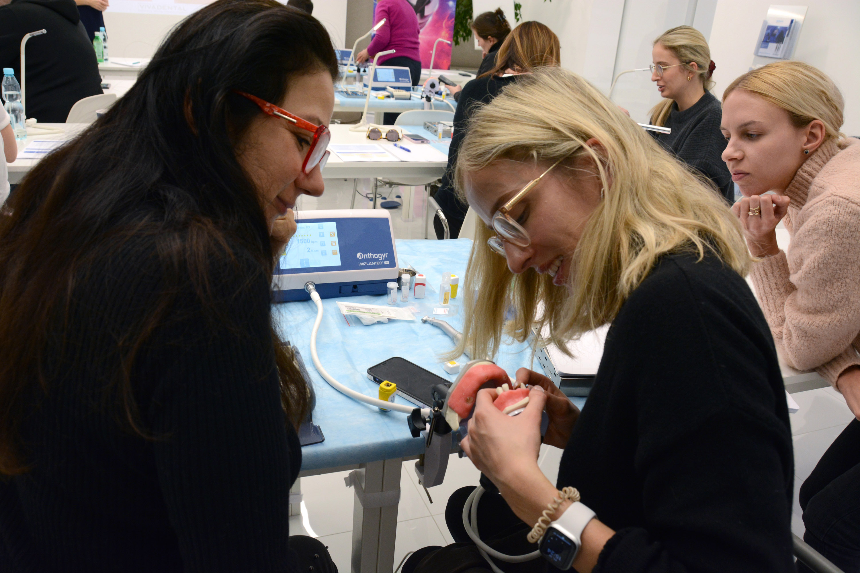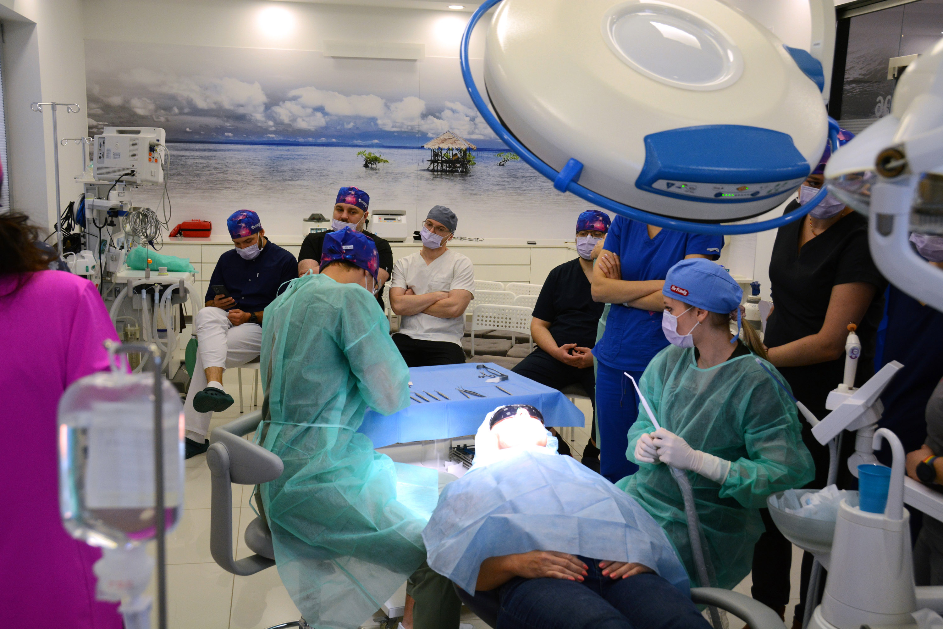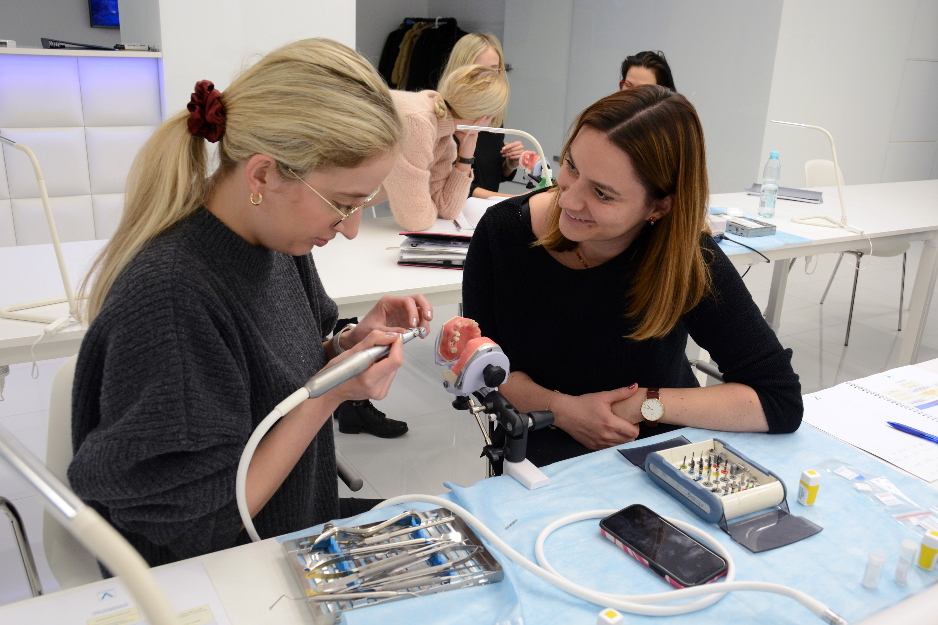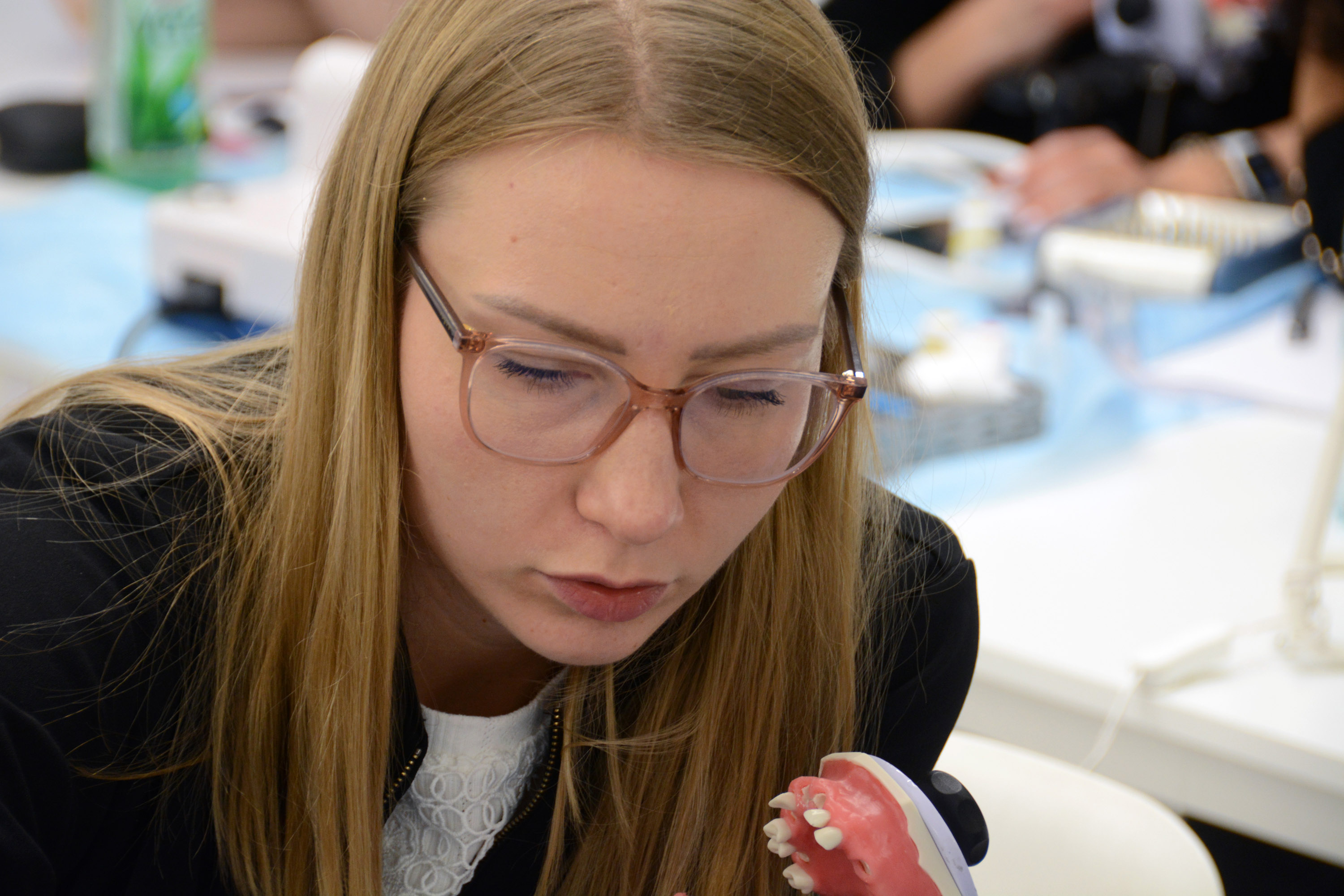 Dr n. med. Magdalena Kisłowska-Syryczyńska podzieliła się wiedzą odnośnie metody pozyskiwania, wirowania i zastosowanie PRF / fibryny bogatopłytkowej. Kolejno odbył się zabieg regeneracji kości wykonany przez kursantów. Odbudowany został wyrostek zębodołowy szczęki z zastosowaniem kości własnej, preparatu kościozastępczego i błony zaporowej.