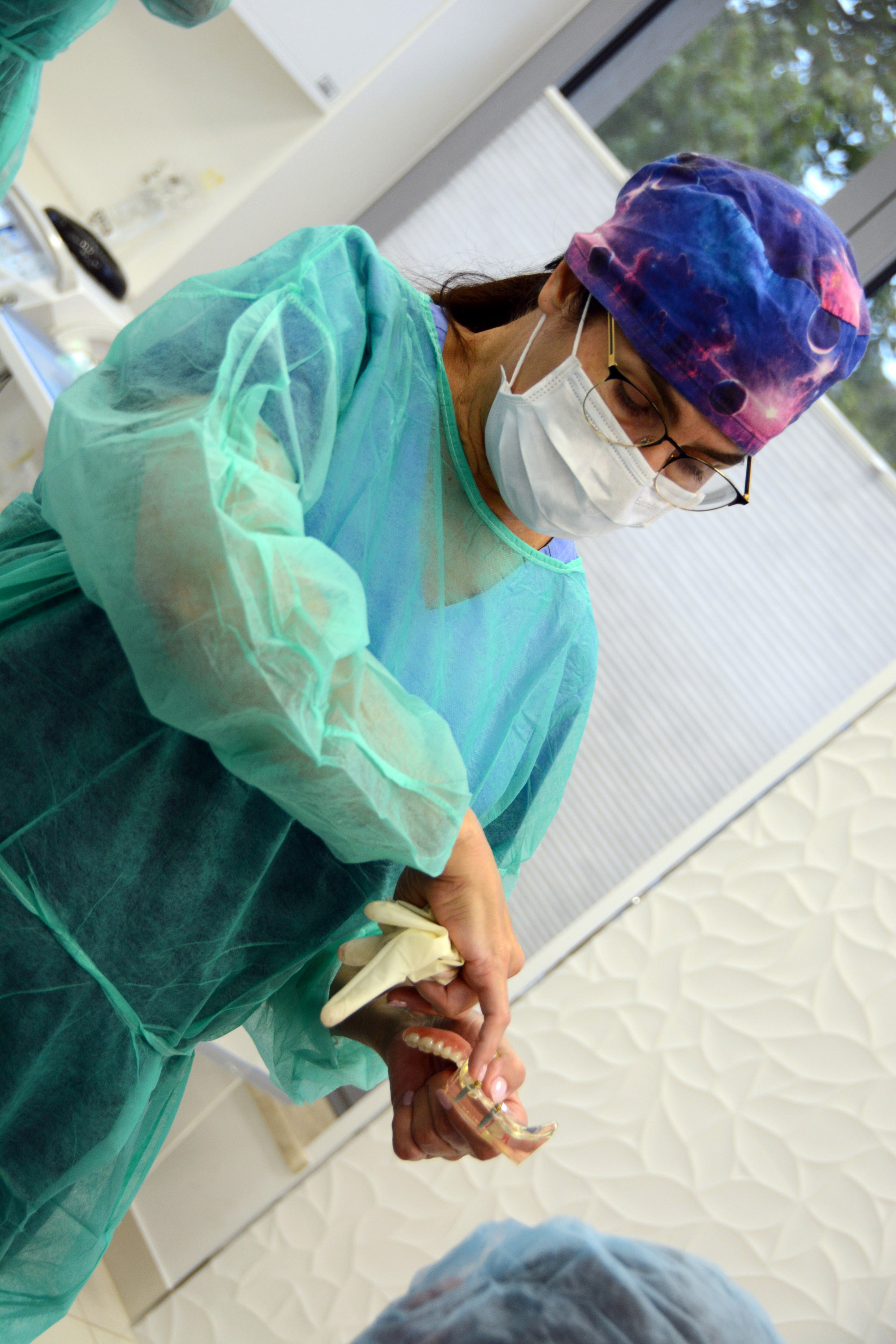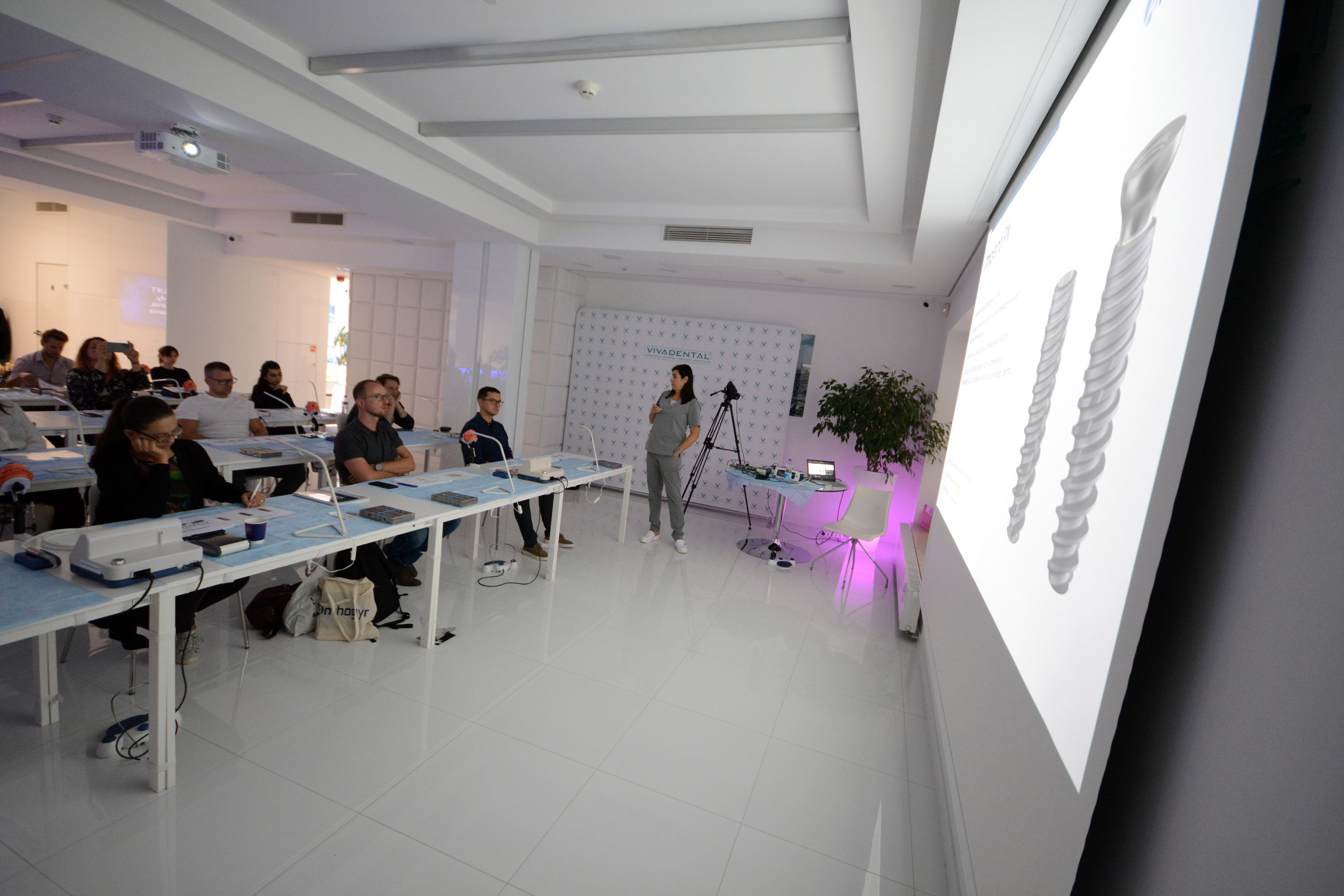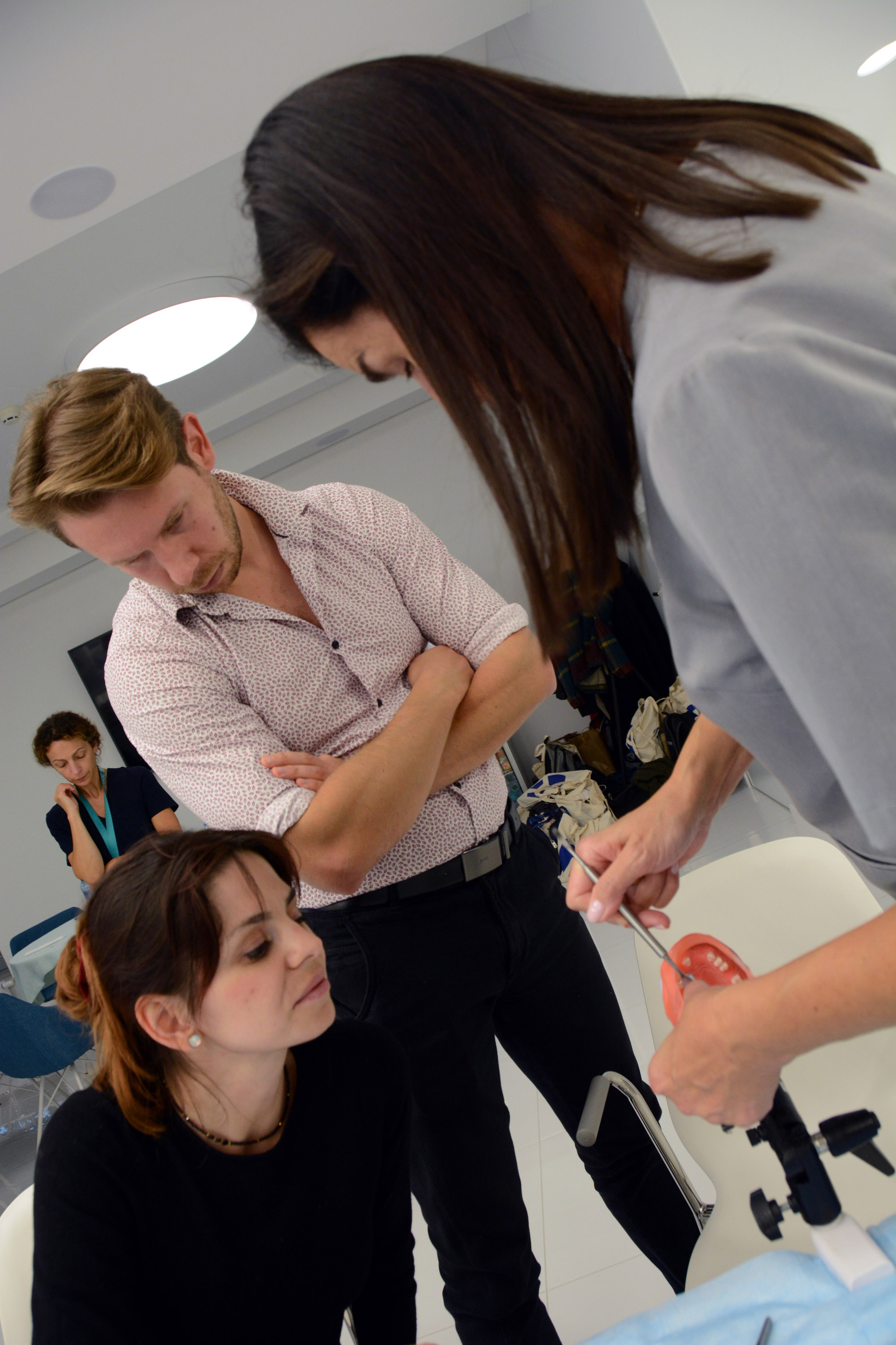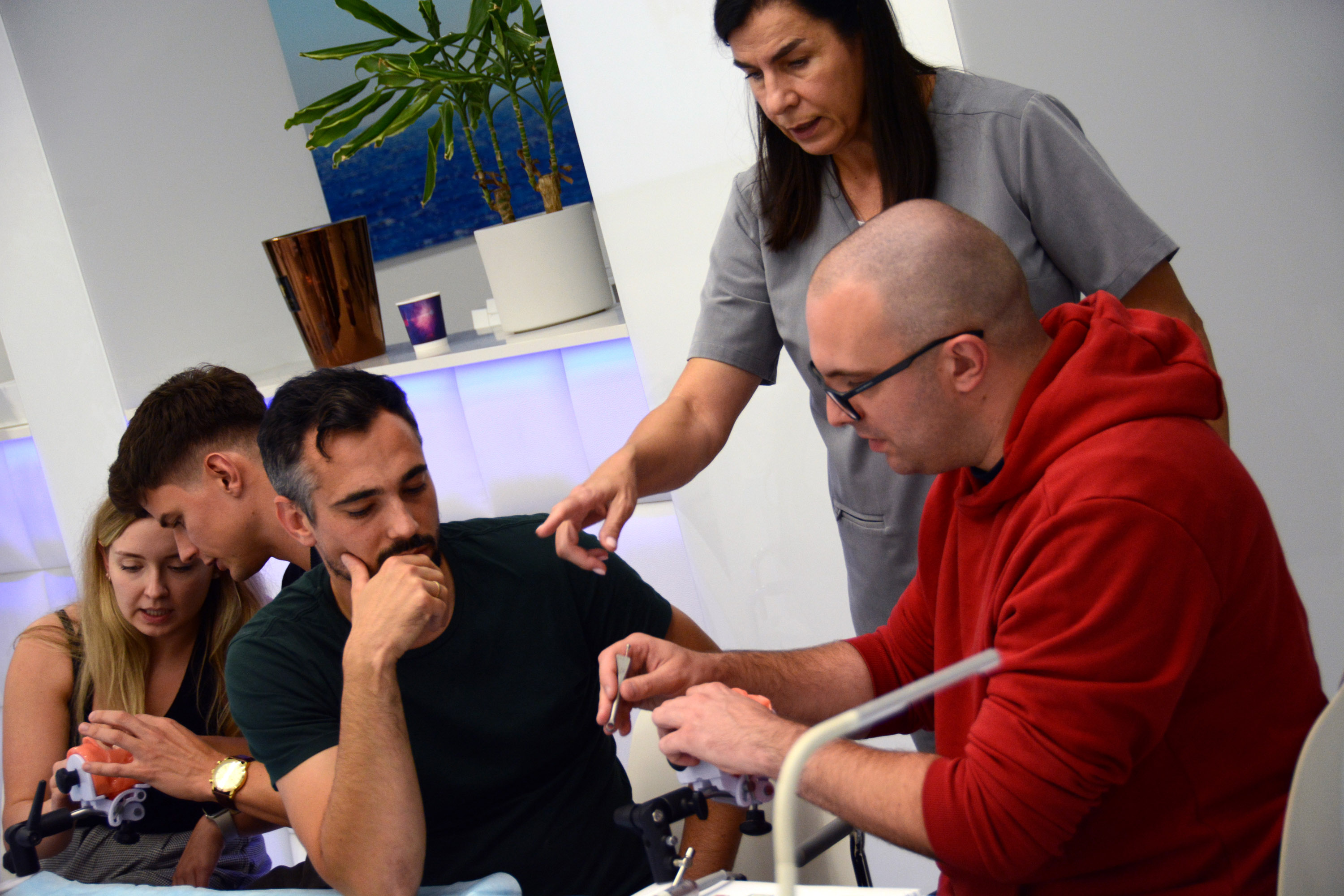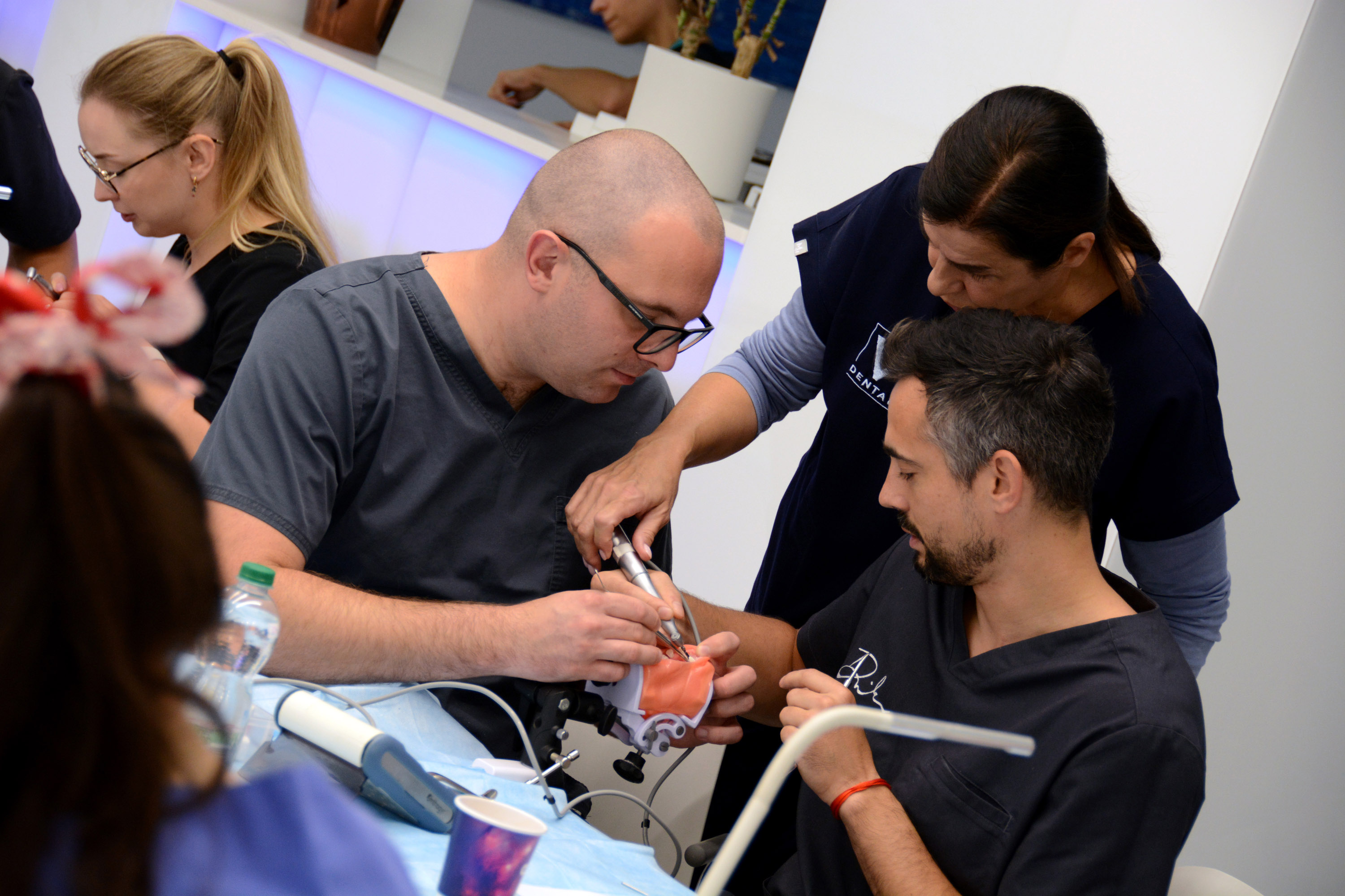 Już na pierwszym etapie szkolenia uczestnicy zapoznali się z systemem implantologicznym Axiom, a następnie ćwiczyli na modelach, przygotowując się do pracy z pacjentem. Zwieńczeniem pierwszej sesji były zabiegi wprowadzenia łącznie trzech implantów w szczęce, odbudowa kości oraz odsłonięcie implantów- oczywiście wszystko odbyło się pod okiem dr n. med. Violetty Szycik.