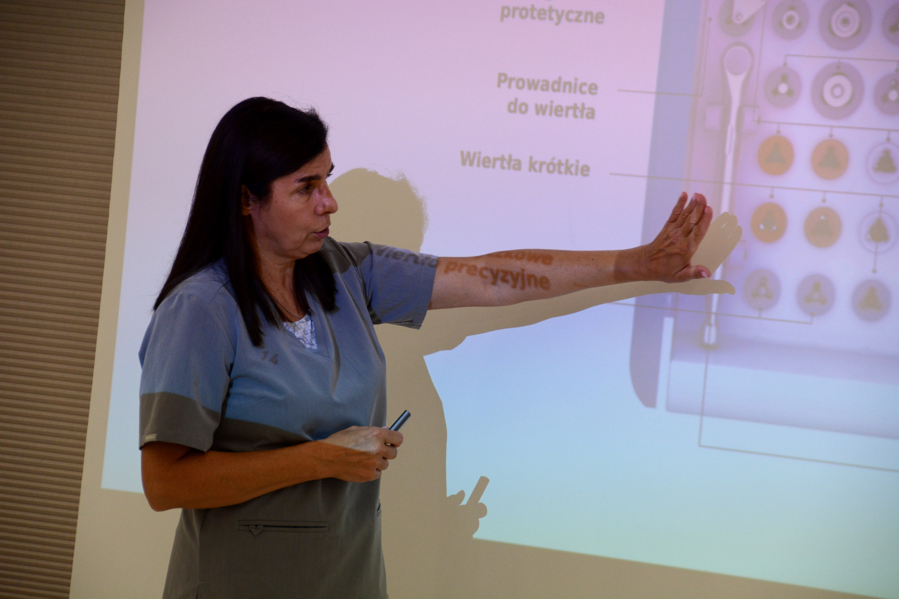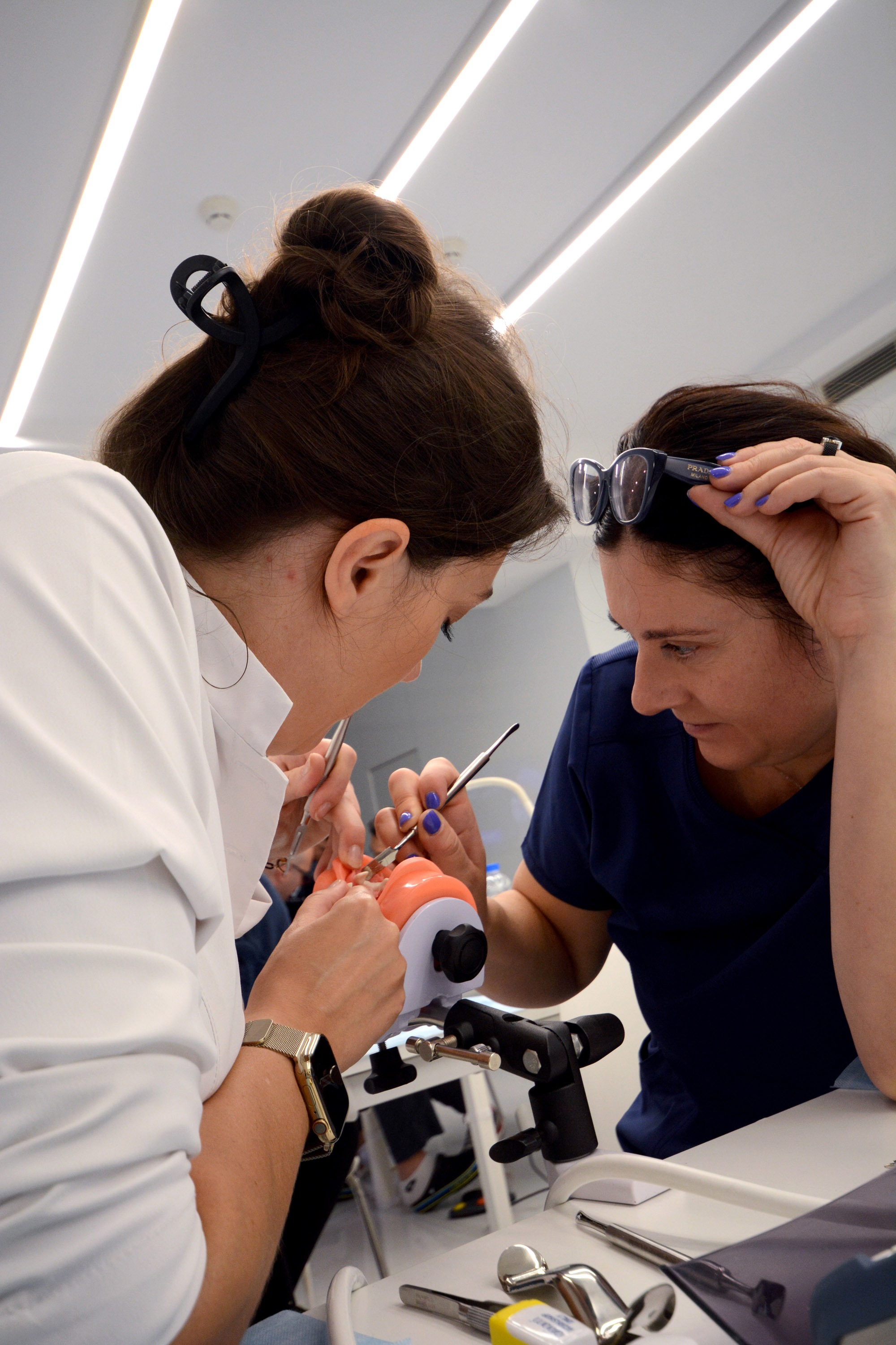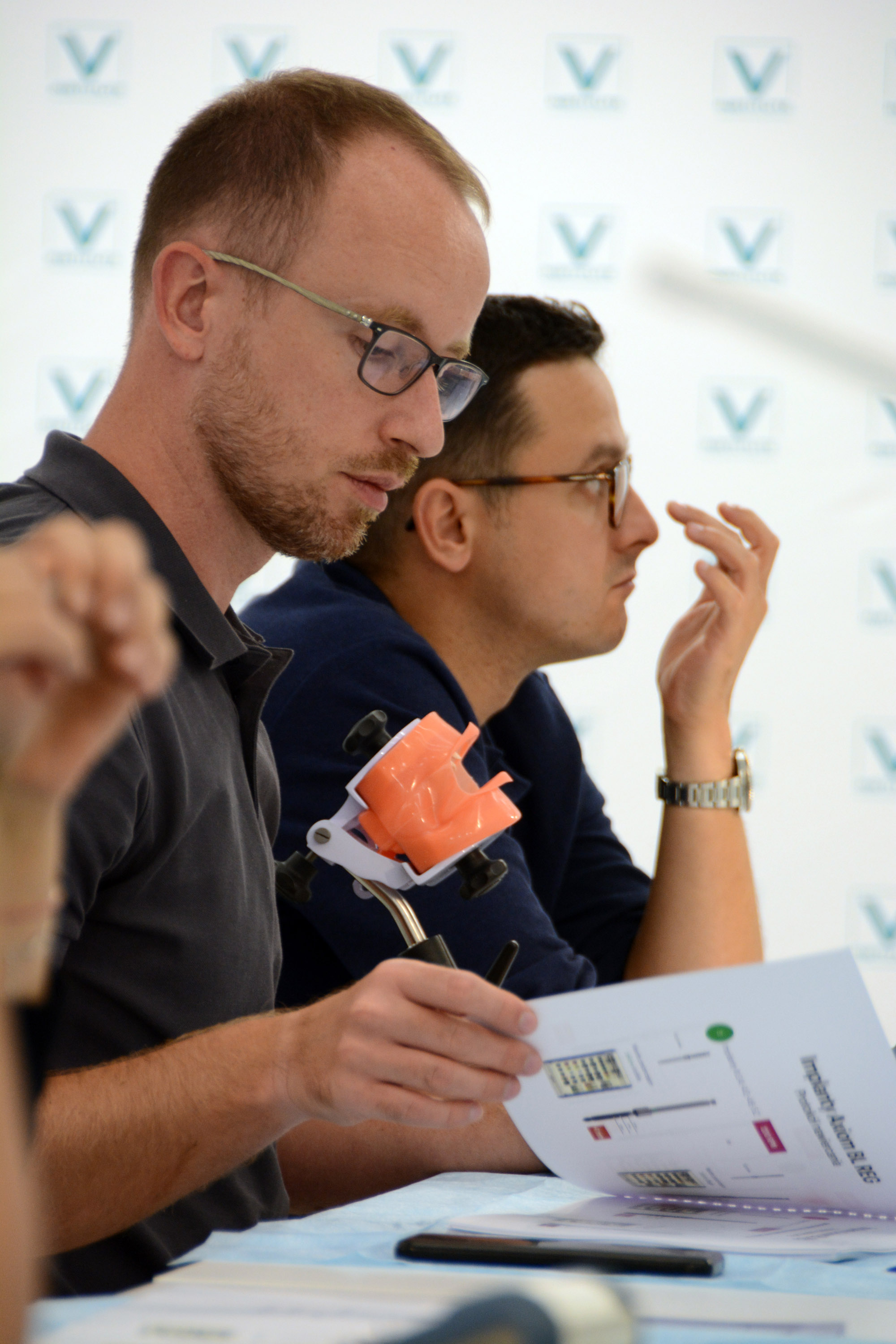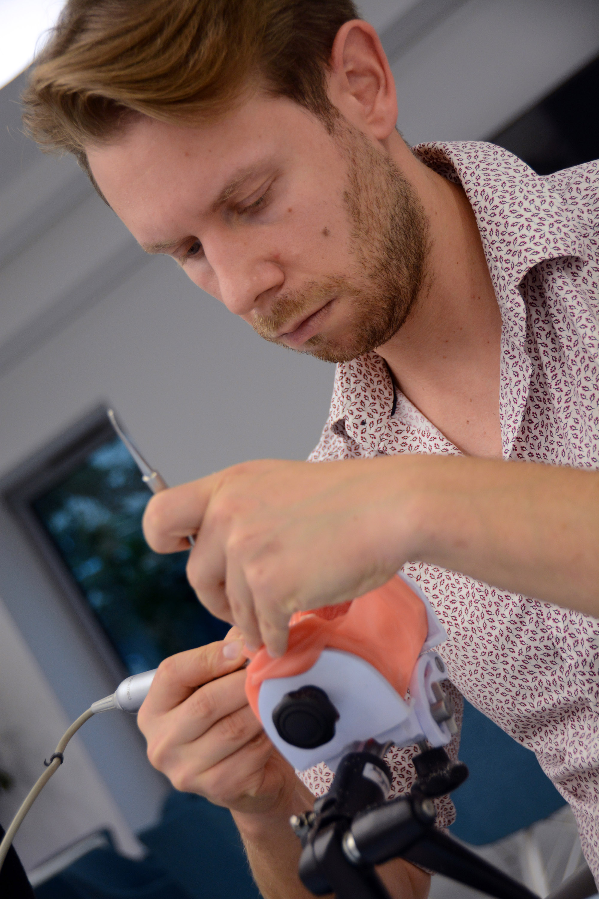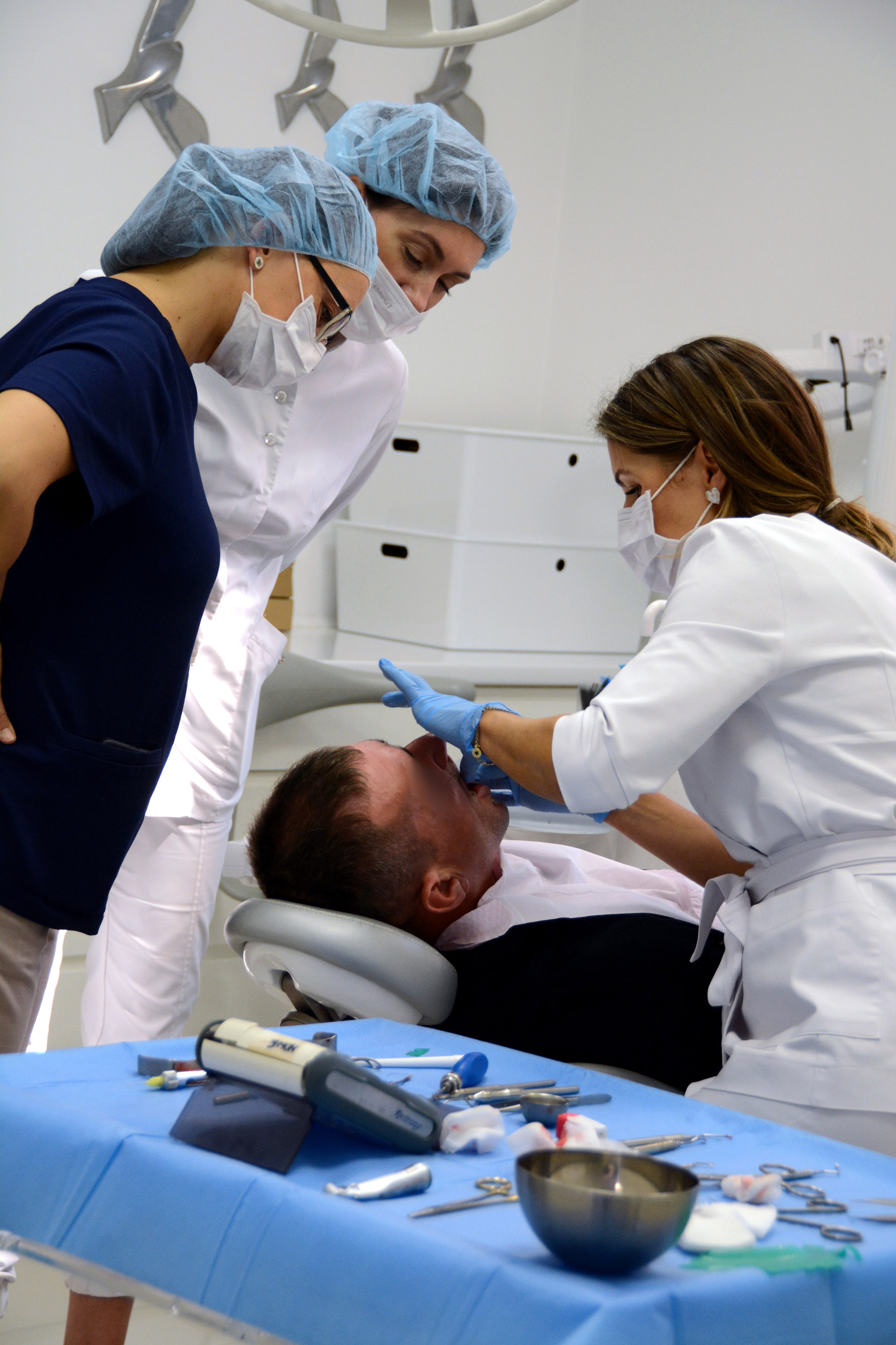 Już na pierwszym etapie szkolenia uczestnicy zapoznali się z systemem implantologicznym Axiom, a następnie ćwiczyli na modelach, przygotowując się do pracy z pacjentem. Zwieńczeniem pierwszej sesji były zabiegi wprowadzenia łącznie trzech implantów w szczęce, odbudowa kości oraz odsłonięcie implantów- oczywiście wszystko odbyło się pod okiem dr n. med. Violetty Szycik.