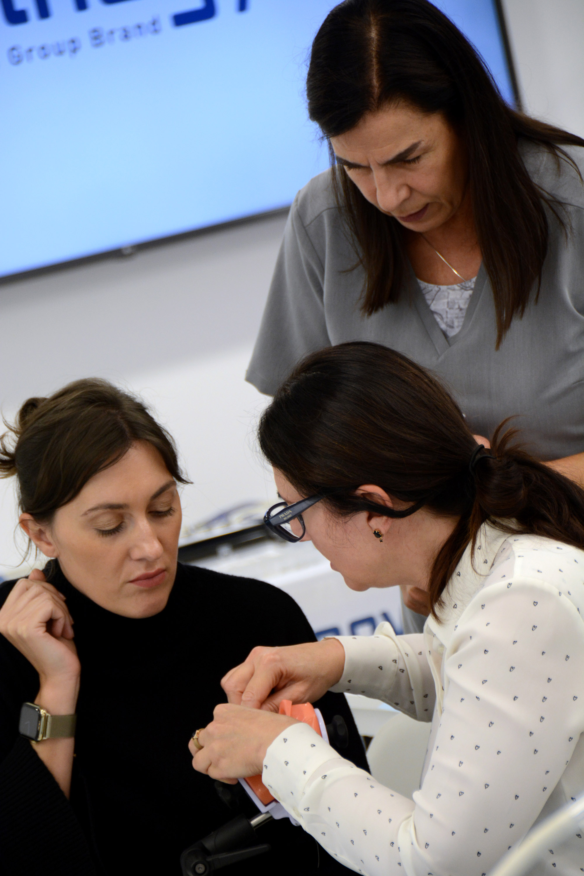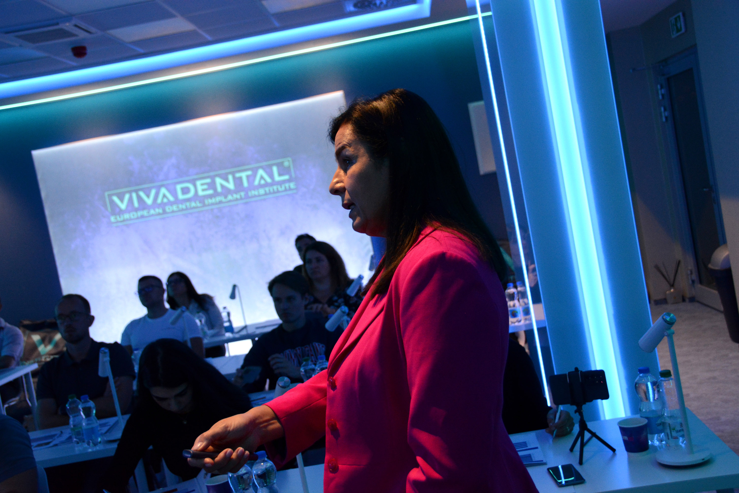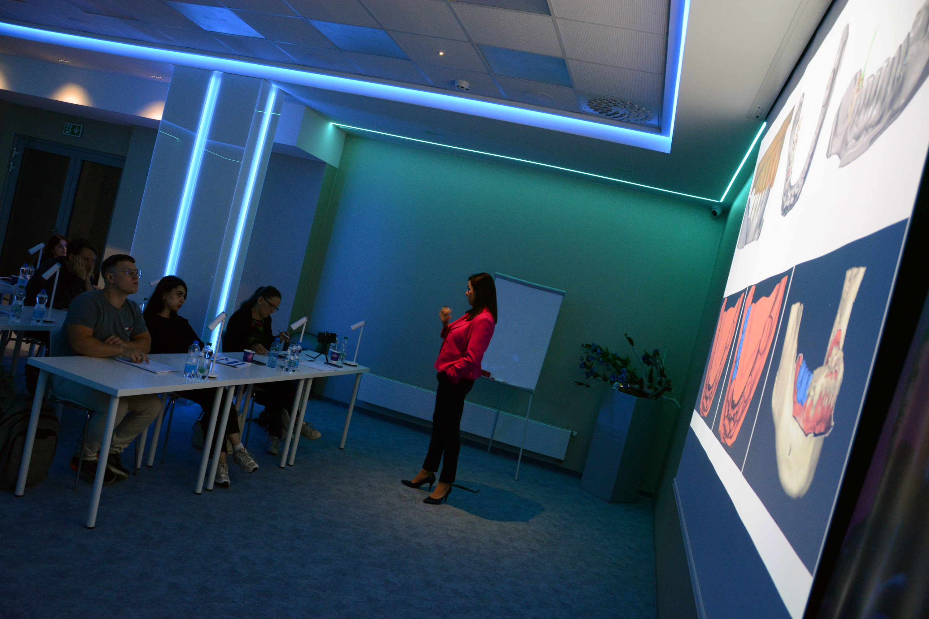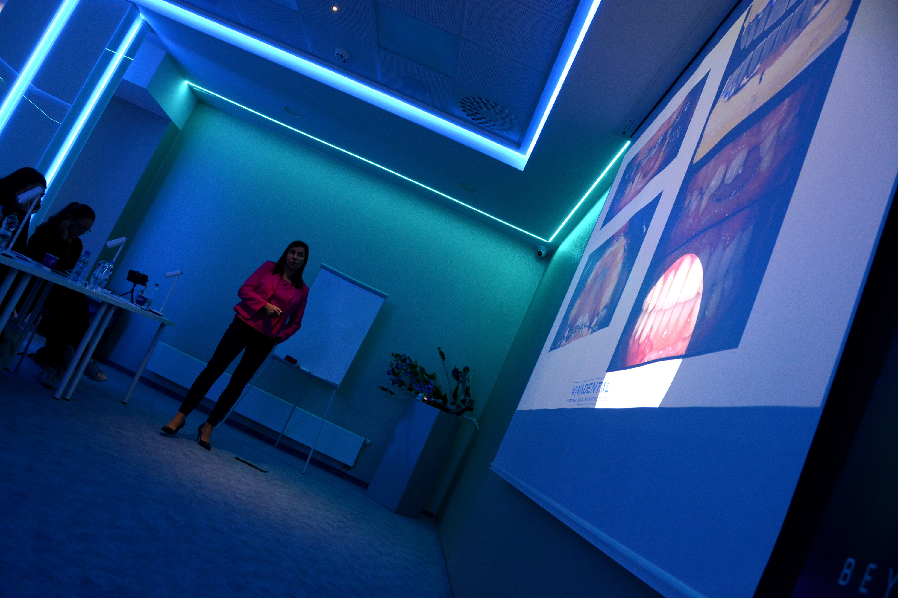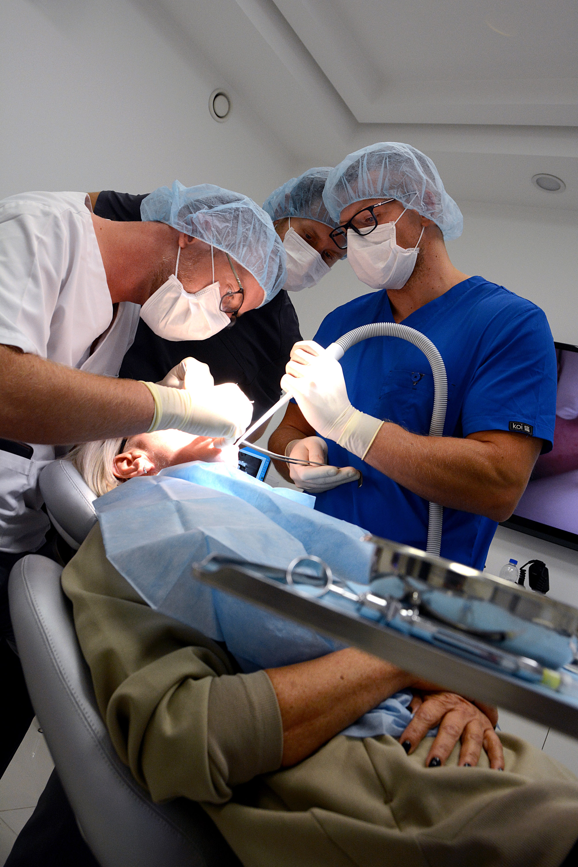 Już na pierwszym etapie szkolenia uczestnicy zapoznali się z systemem implantologicznym Axiom, a następnie ćwiczyli na modelach, przygotowując się do pracy z pacjentem. Zwieńczeniem pierwszej sesji były zabiegi wprowadzenia łącznie trzech implantów w szczęce, odbudowa kości oraz odsłonięcie implantów- oczywiście wszystko odbyło się pod okiem dr n. med. Violetty Szycik.