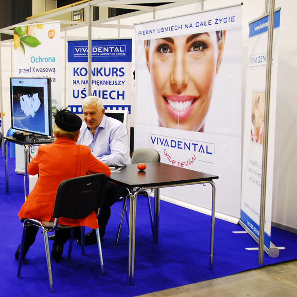 My zaprezentowaliśmy nasz wiodący produkt – Vivadental Smile Design. Wzbudził on wielkie zainteresowanie zwiedzających, którzy z zaciekawieniem dowiadywali się o możliwościach kompleksowego leczenia uzębienia z wykorzystaniem najnowocześniejszych technologii współczesnej medycyny, które dostępne są wyłącznie w Klinice Vivadental. Prezentowaliśmy skaner protetyczny Trios 3 Shape, służący do pobierania elektronicznych wycisków protetycznych, będący kluczowym ogniwem w procesie CAD/CAM – tworzenia niezwykle precyzyjnego uzupełnienia protetycznego, które Pacjent może otrzymać niemalże od razu, nawet w ciągu kliku godzin.